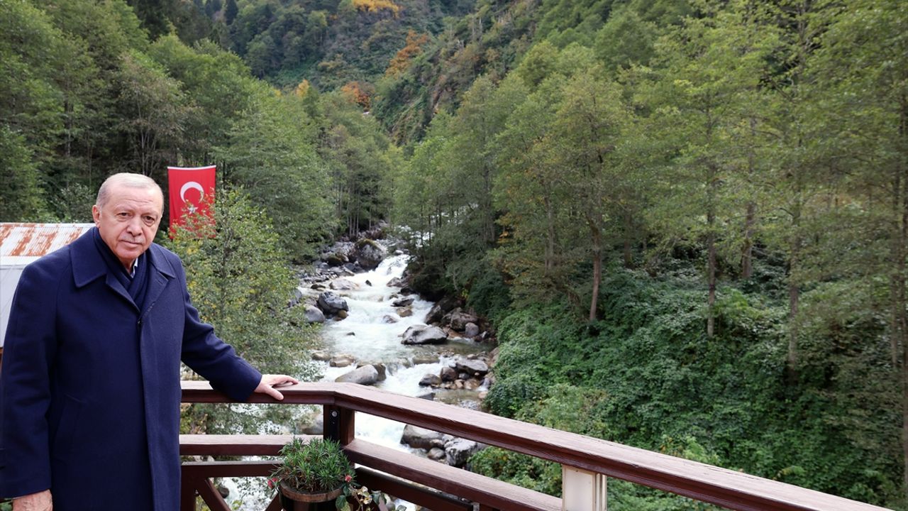 Ziyaretin peşinden helikopterle Ayder Yaylası'na gelen Erdoğan, bölgede yapılan yenileme ve koruma çalışmalarını bir müddet havadan inceledi.