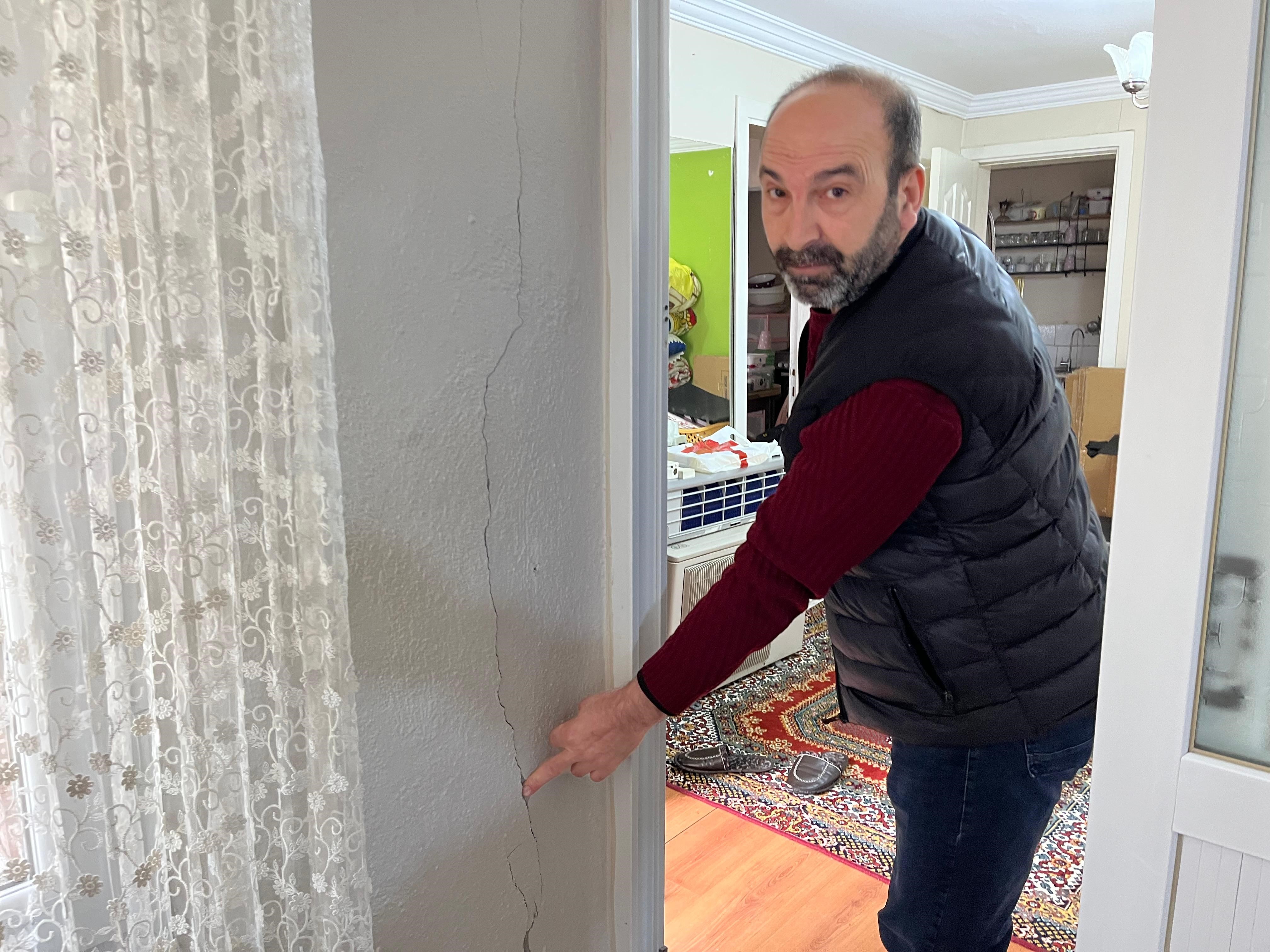 Aynı zamanda kanser hastası olduğu için tedavi gördüğünü de söyleyen Nurettin Çelik, evlerde meydana gelen çatlak ve boşluklardan içeri soğuk girdiğini ve bunun için koli bandıyla önlem aldığını söyledi. Duvardaki çatlakları bantlayarak soğuk girmesini önlemeyi amaçlayan Çelik, "Aşırı derecede soğuk giriyor içeri. Ben kanser hastasıyım tedavi görüyorum. Çare bulunsun istiyorum. Bu ev her an yıkılabilir, ölürüz. Ben kanser hastasıyım. Hastalıktan ölmedim, tünelden öleceğim" dedi.