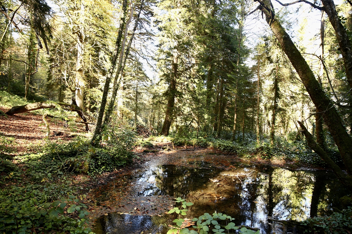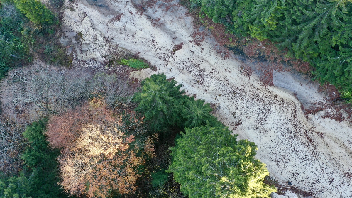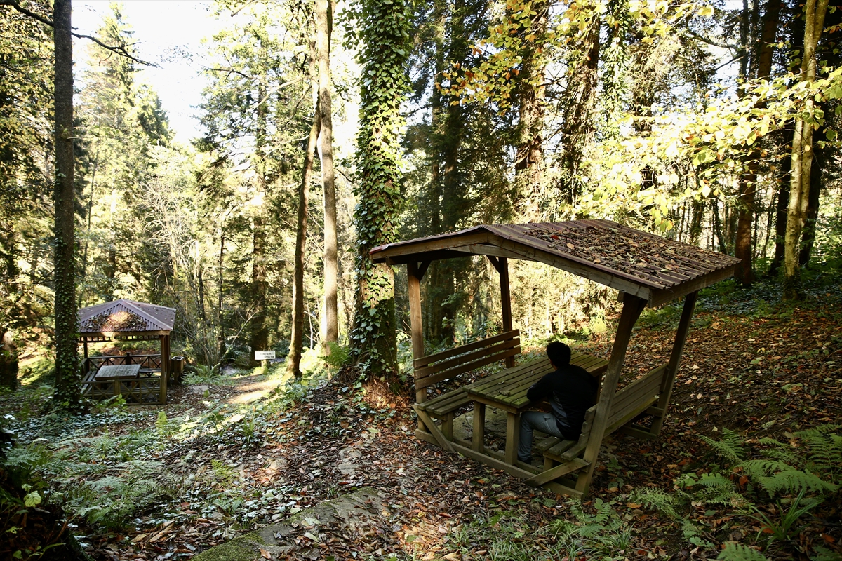 İlçenin önemli turizm merkezlerinden Kuzalan Tabiat Parkı'nın üst kısımlarındaki traverten ve subasar ormanlarının yer aldığı bölge, sarı ve yeşilin tonlarına büründü.