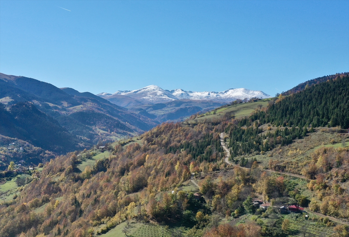 Dereli-Şebinkarahisar kara yolu güzergahında araçla seyahat edenler, doğadaki görsel şölenin keyfini çıkardı.