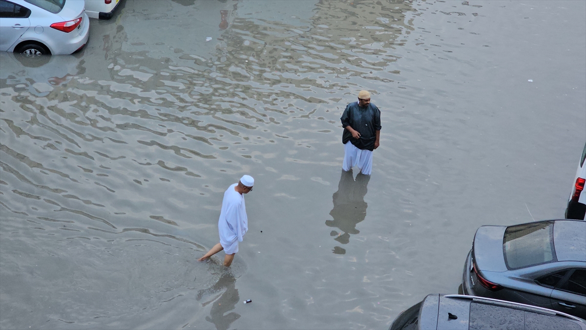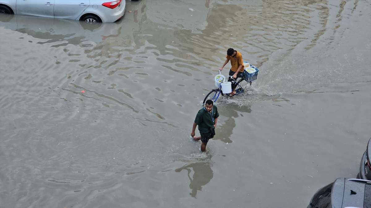 Şiddetli yağış nedeniyle yollarda su birikintileri oluştu, vatandaşlar ve araçlar yollarda mahsur kaldı.