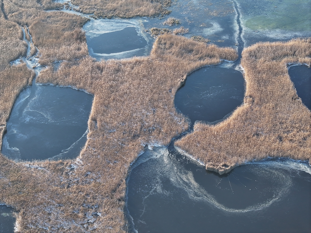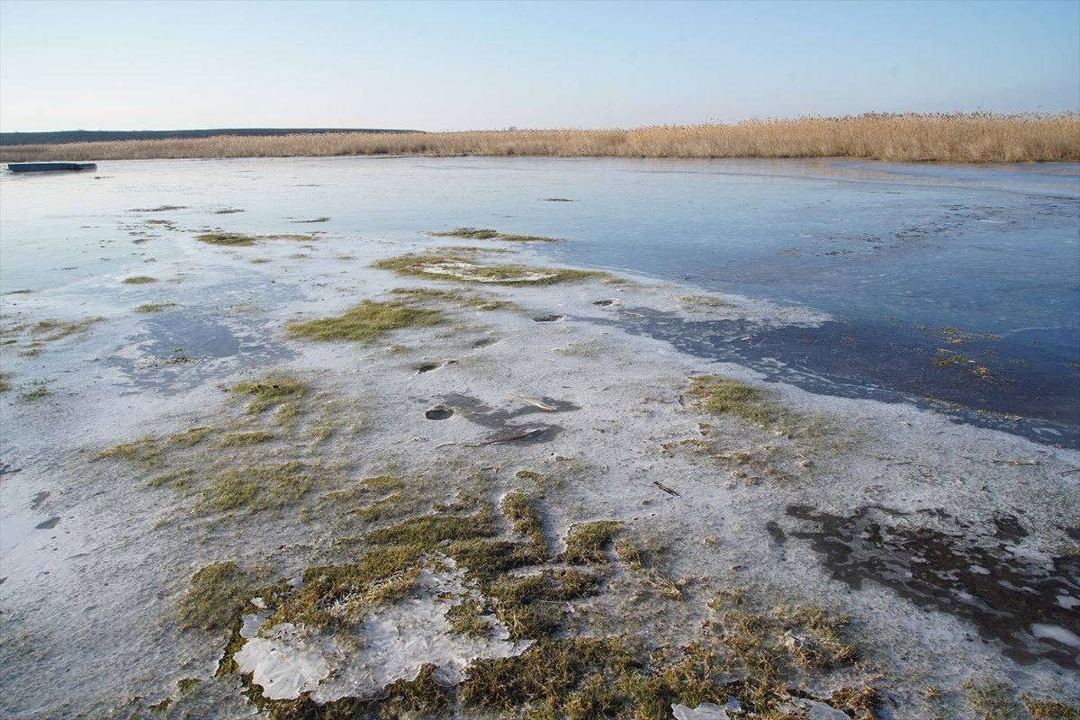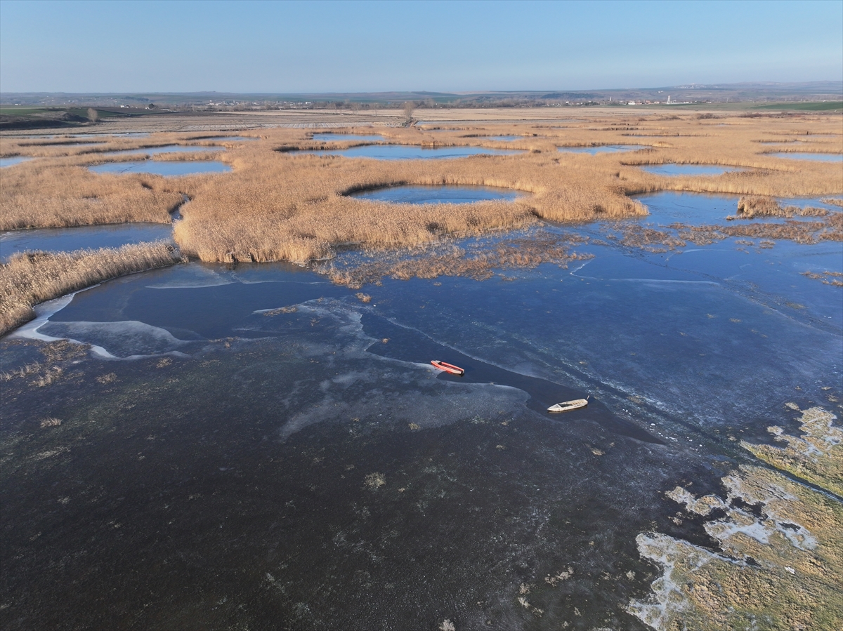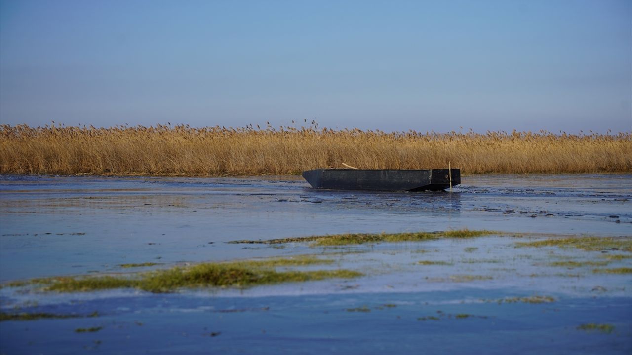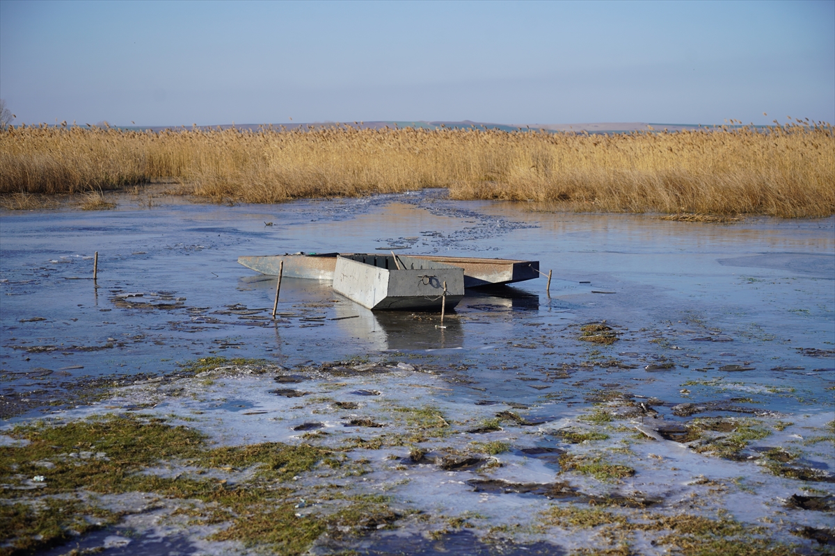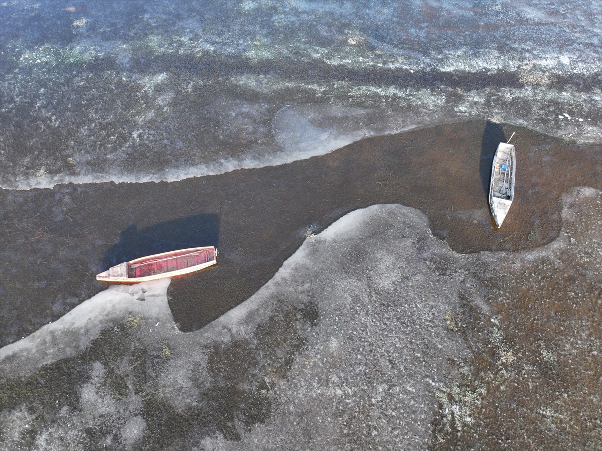 Bölgede, göl kenarındaki kayıkların buzun içinde kaldığı görüldü.