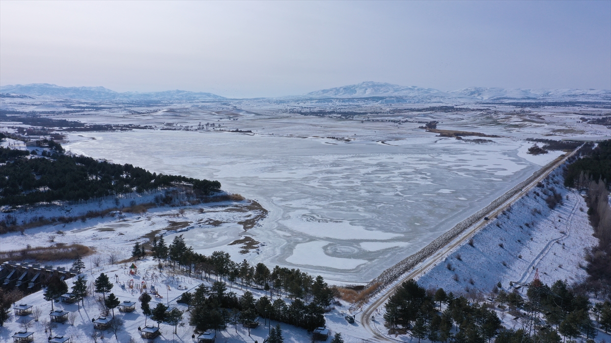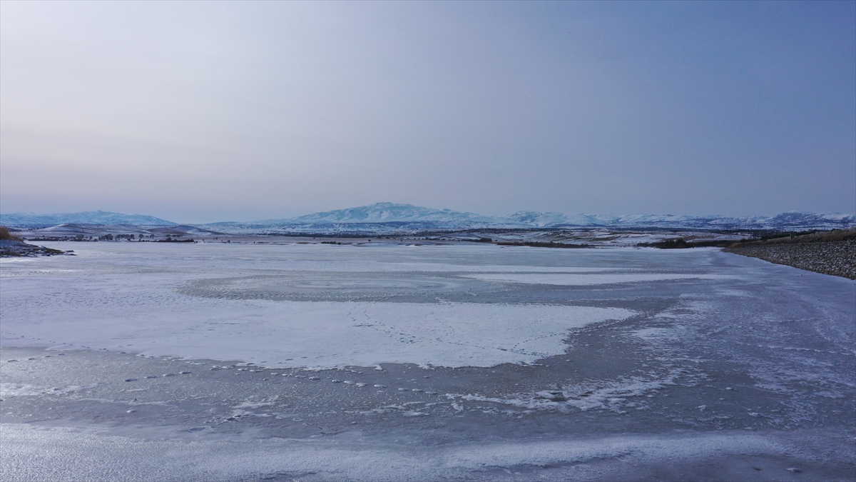 Baraj gölünün yüzeyinin donmasıyla bazı kuş türlerinin buz kütlesinin üzerinde konakladığı görüldü.