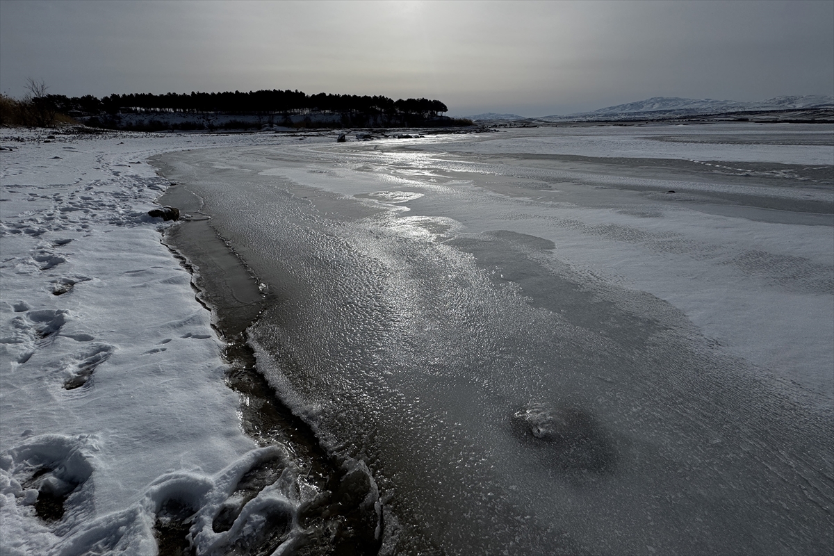 Hava sıcaklığının gece sıfırın altında 11 dereceye düştüğü kentte, kent merkezine yaklaşık 15 kilometre mesafede yer alan Cip Çayı üzerinde kurulu Cip Barajı'nın yüzeyi kar ve buzla kaplandı.