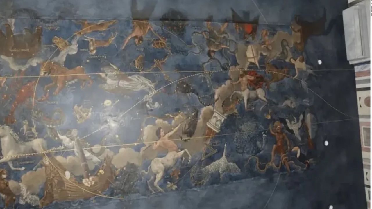 Yayınlanan fotoğraflarda, yapının tavanının tamamının gökyüzünü andıracak şekilde boyandığı, bu fonun üzerine de hayvan figürleri, takımyıldızlar, zodyak burçları, mitolojik ve denizcilik temalı unsurlar görülüyor.