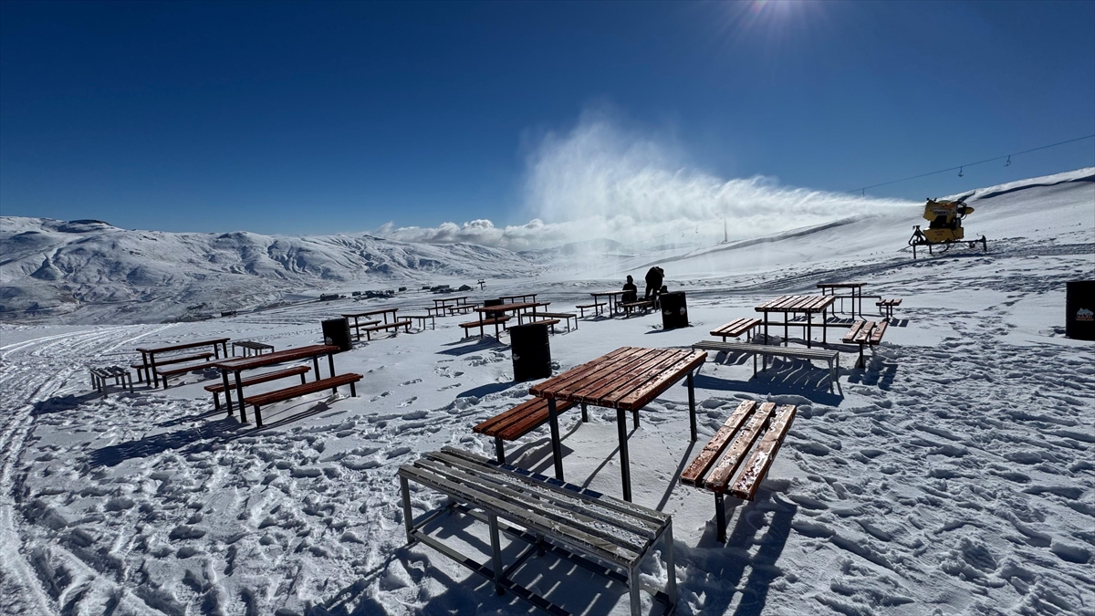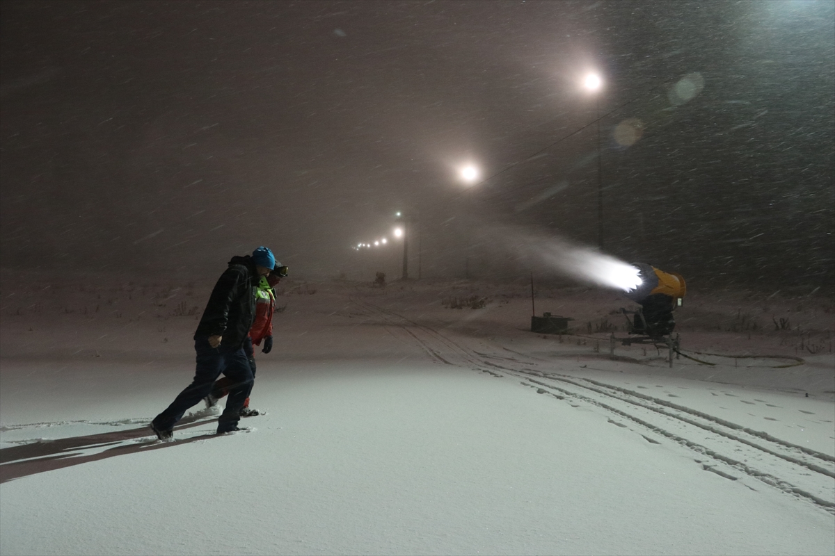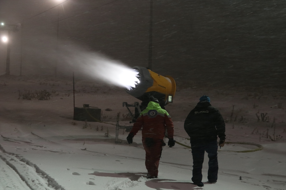 Her yıl hem yurtiçinden hem de yurtdışından binlerce turisti ağırlayan kayak merkezinde 24 saat boyunca aralıksız devam eden suni karlama çalışmalarıyla pistler beyaz örtüyle kaplanmaya başlandı.