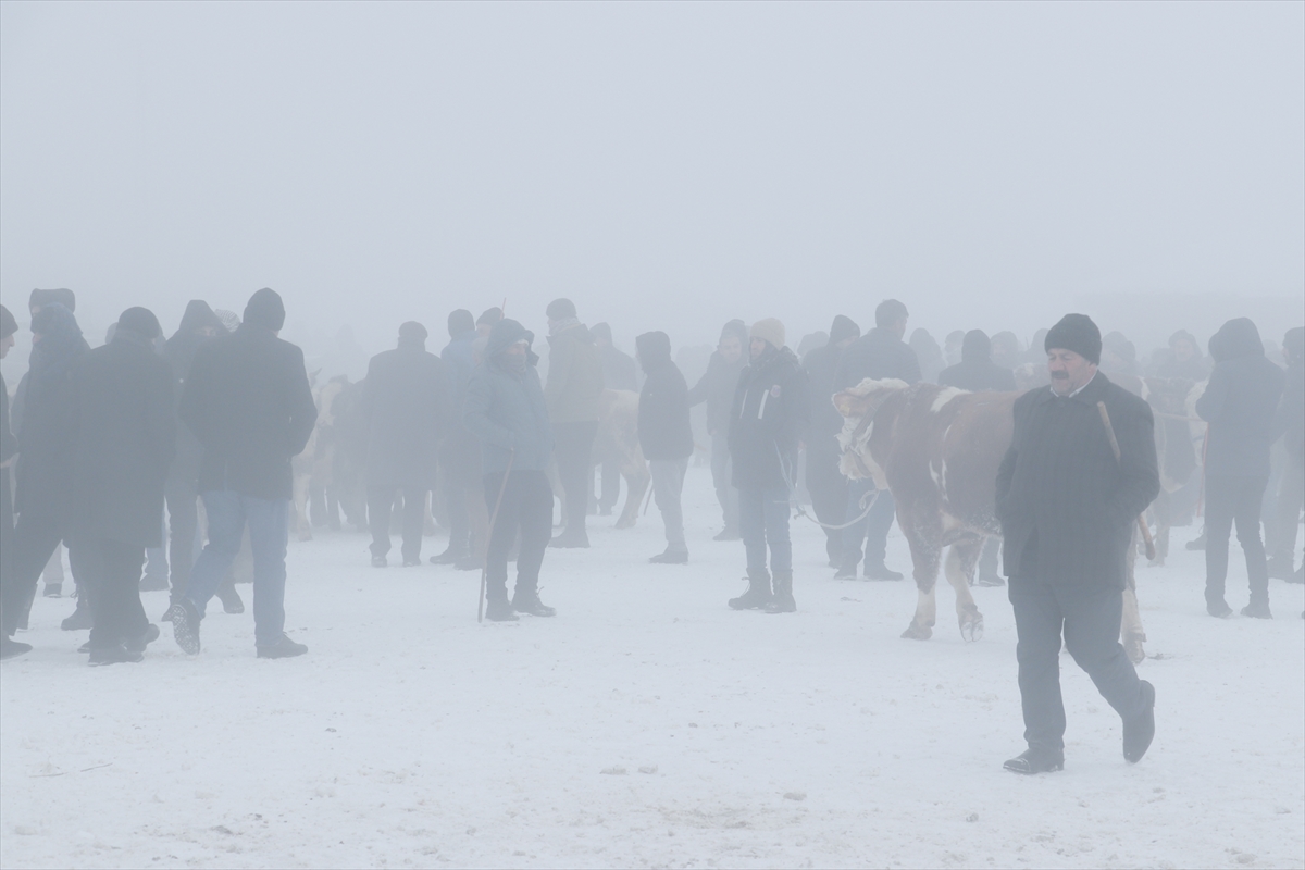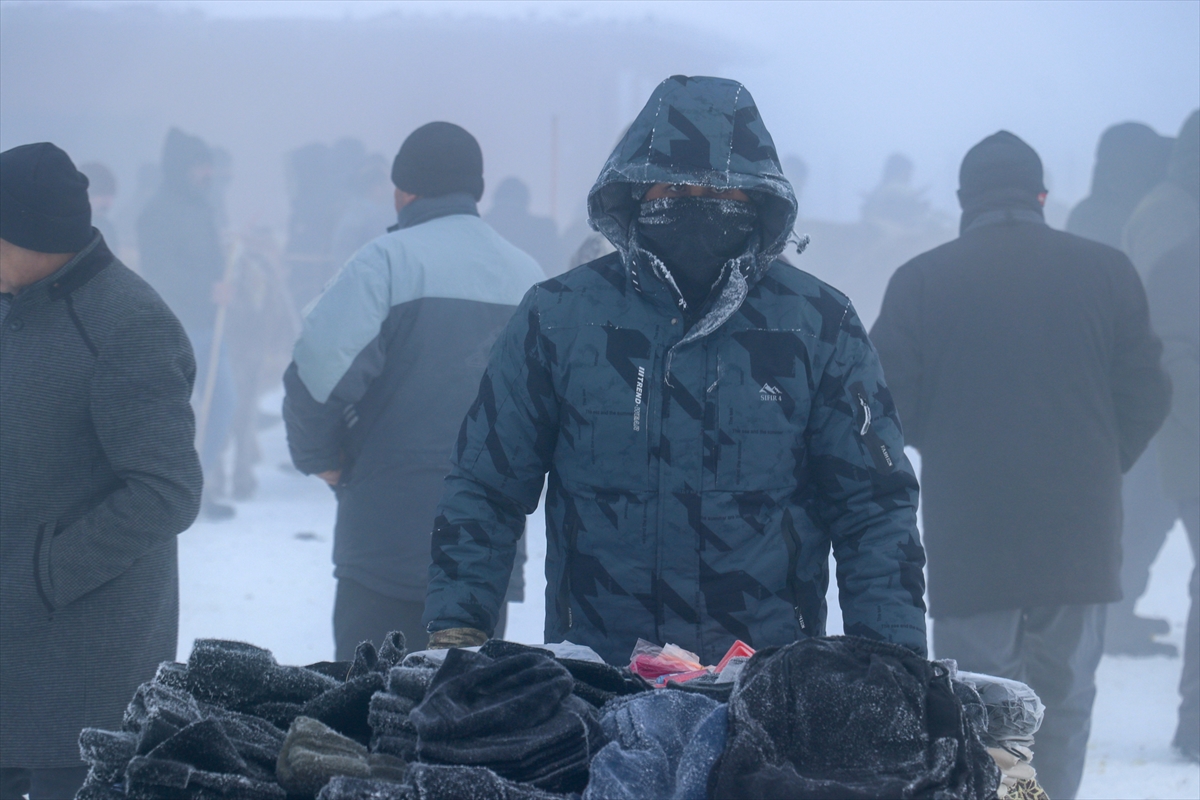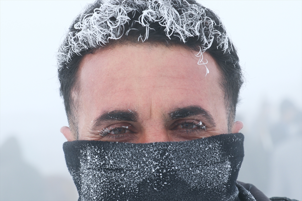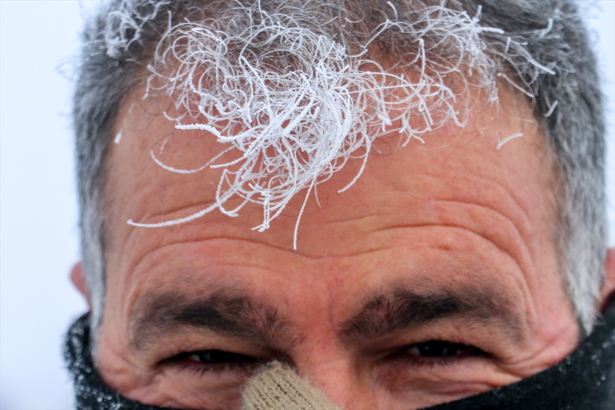 Erken saatlerde hayvan borsasına giden vatandaşların kaş ve saçlarında kırağı oluştu.