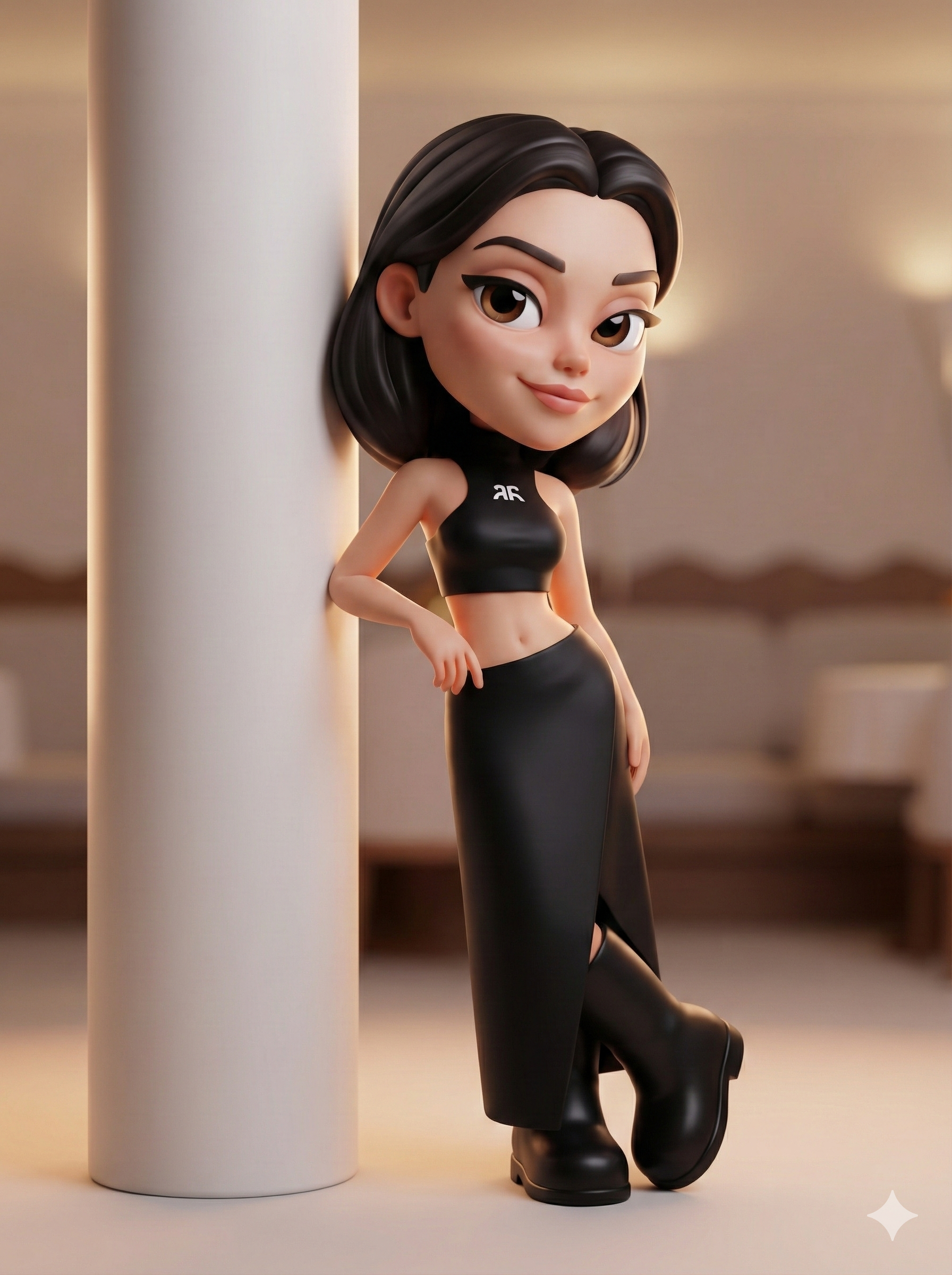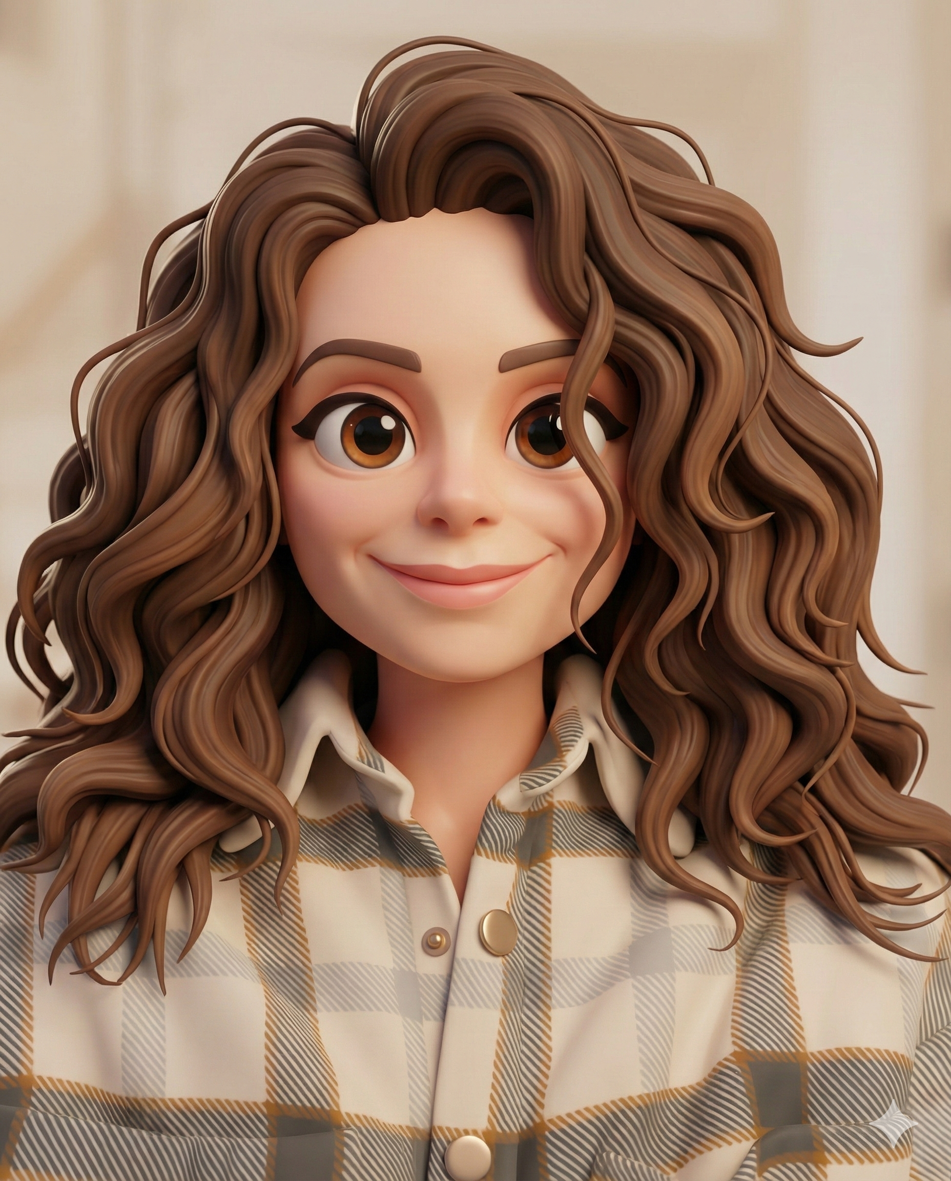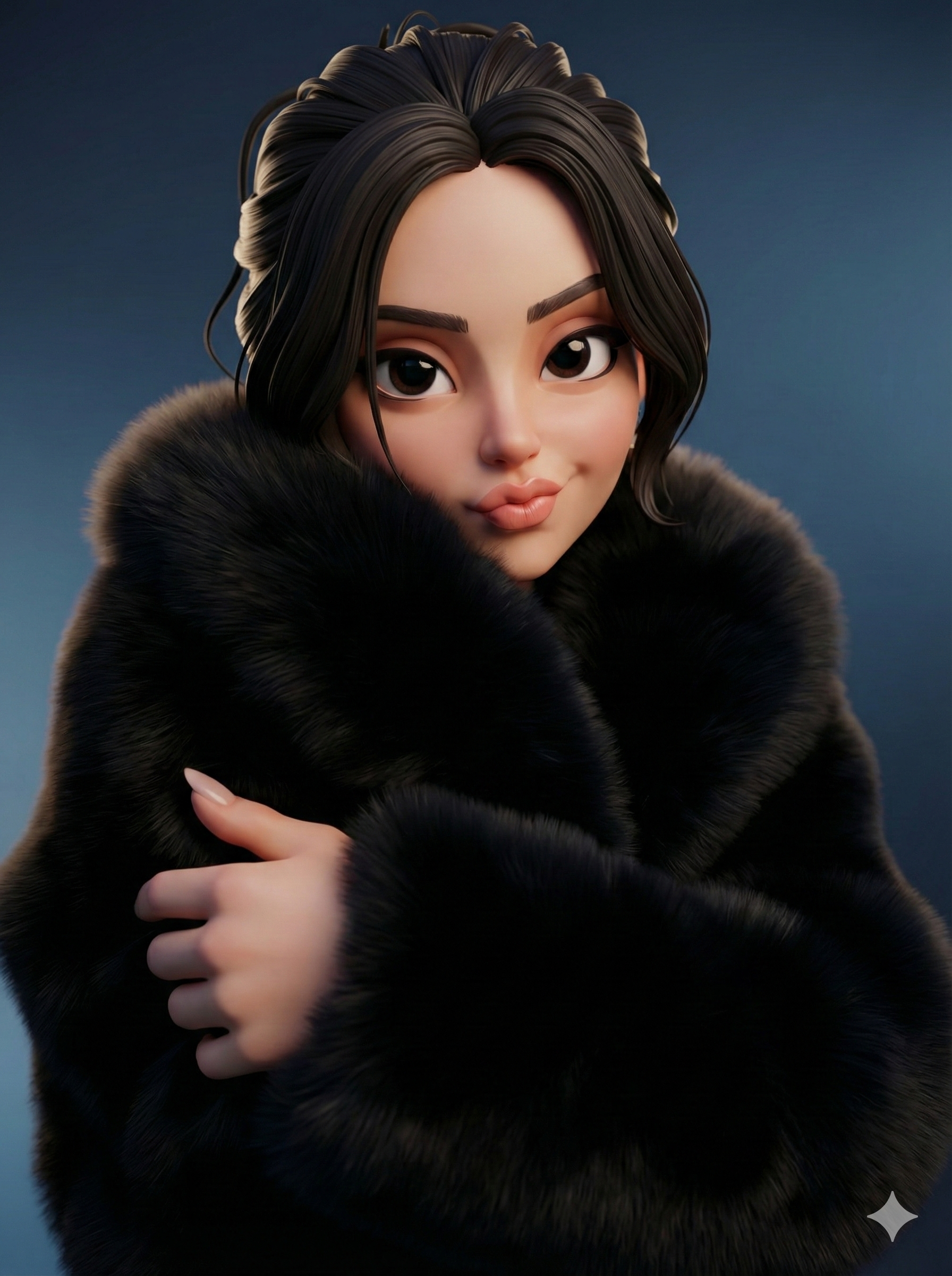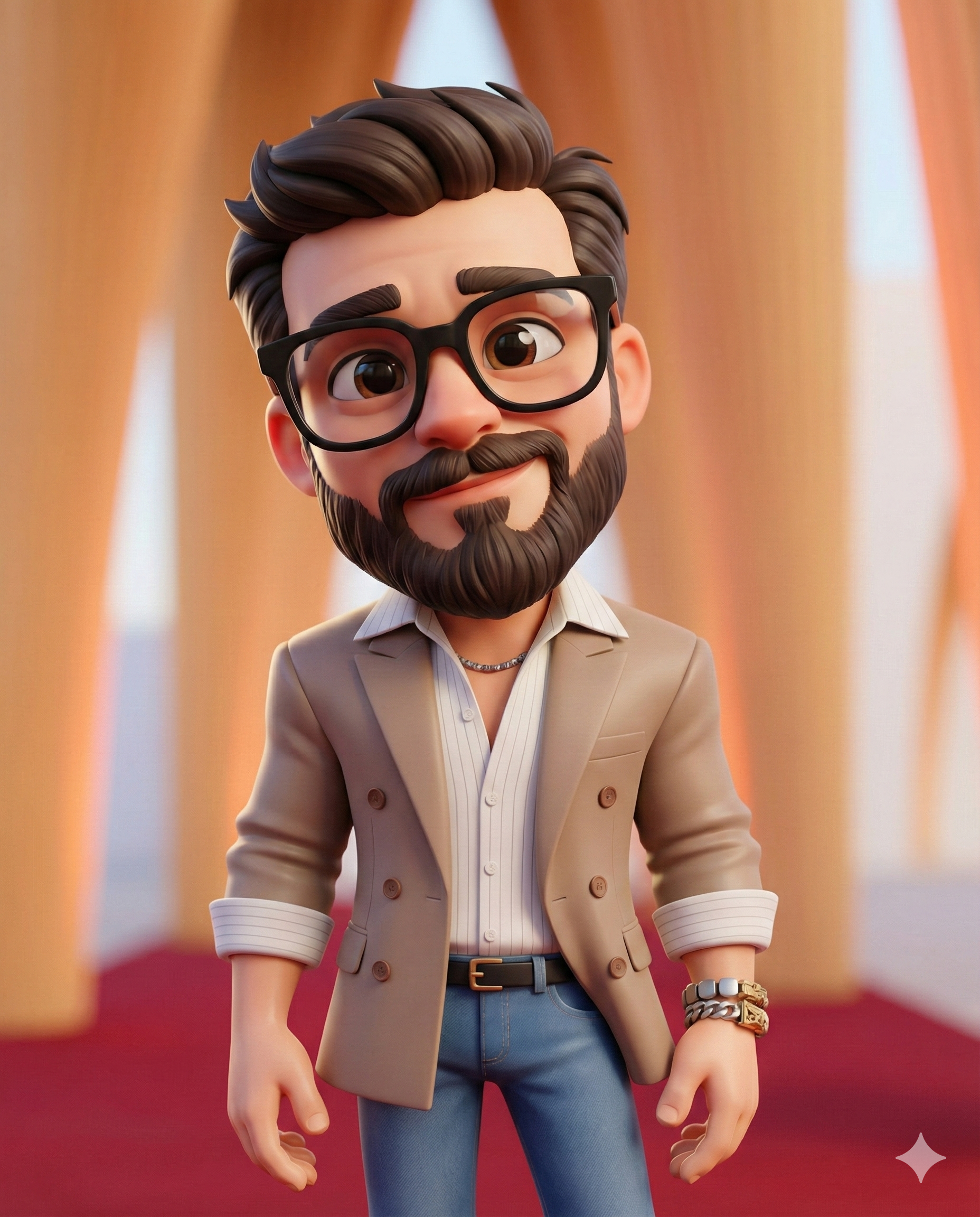 A highly stylized 3D caricature of, with an oversized head, expressive facial features, and playful exaggeration. Rendered in a smooth, polished style with clean materials and soft ambient lighting. Minimal background to emphasize the character’s charm and presence.