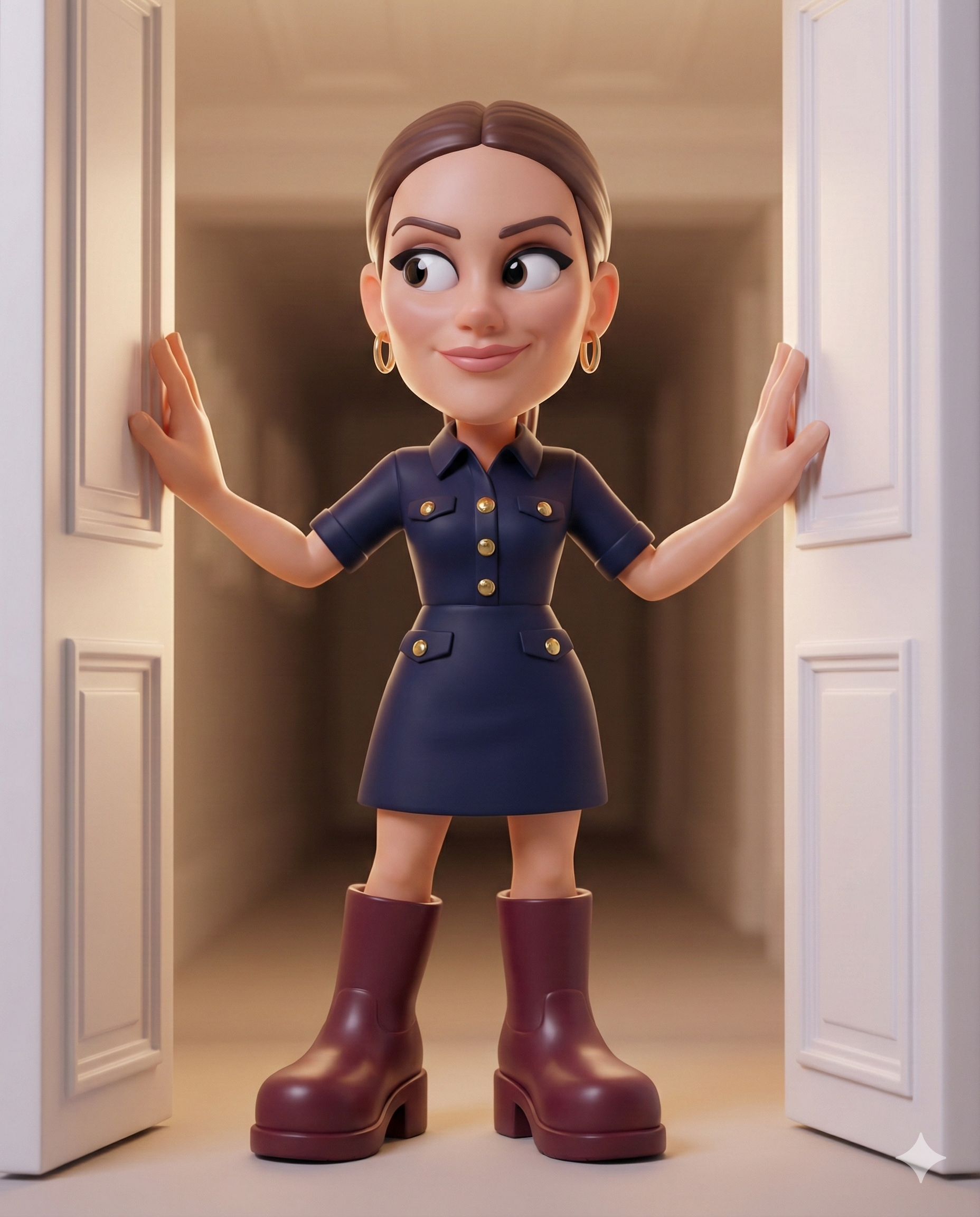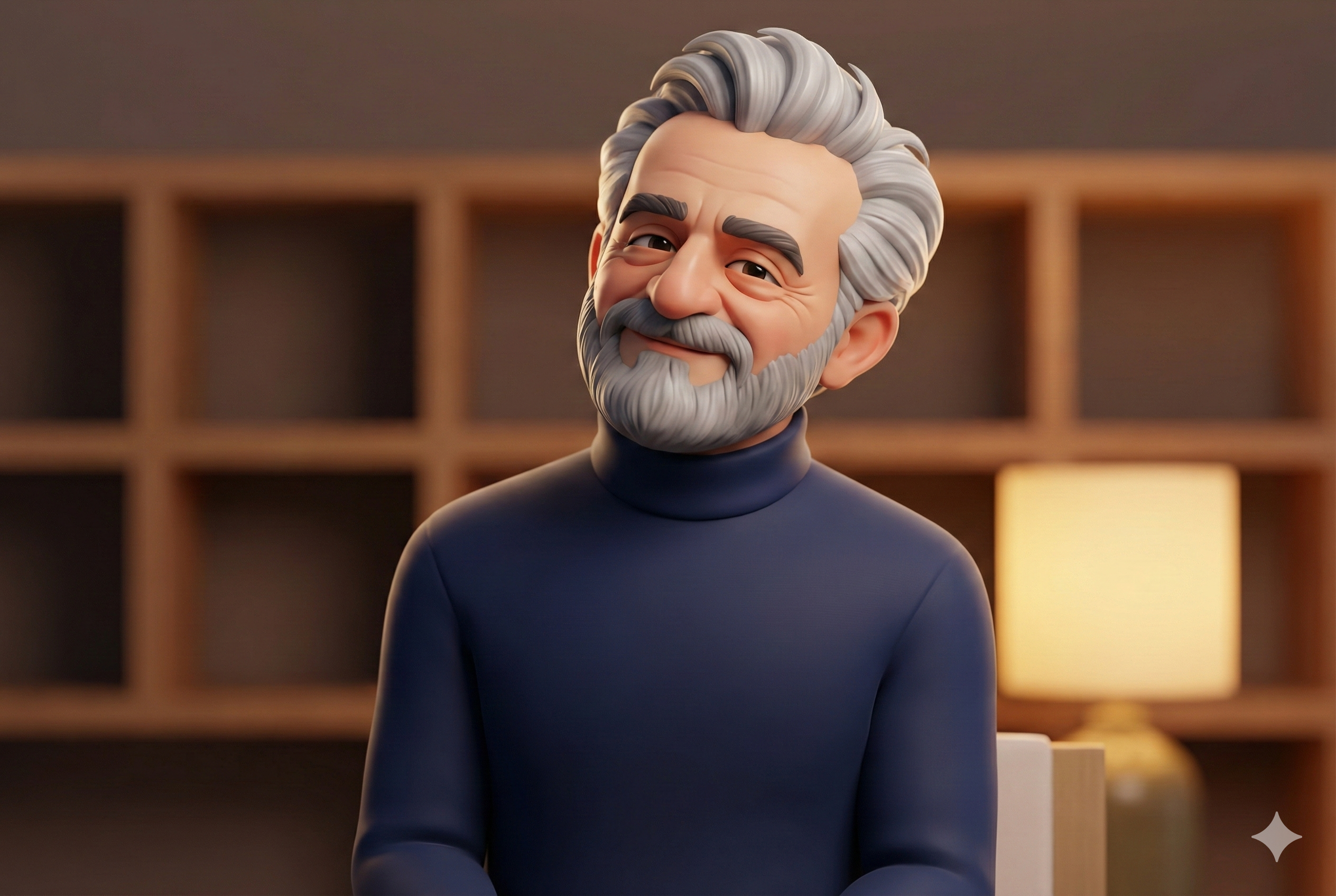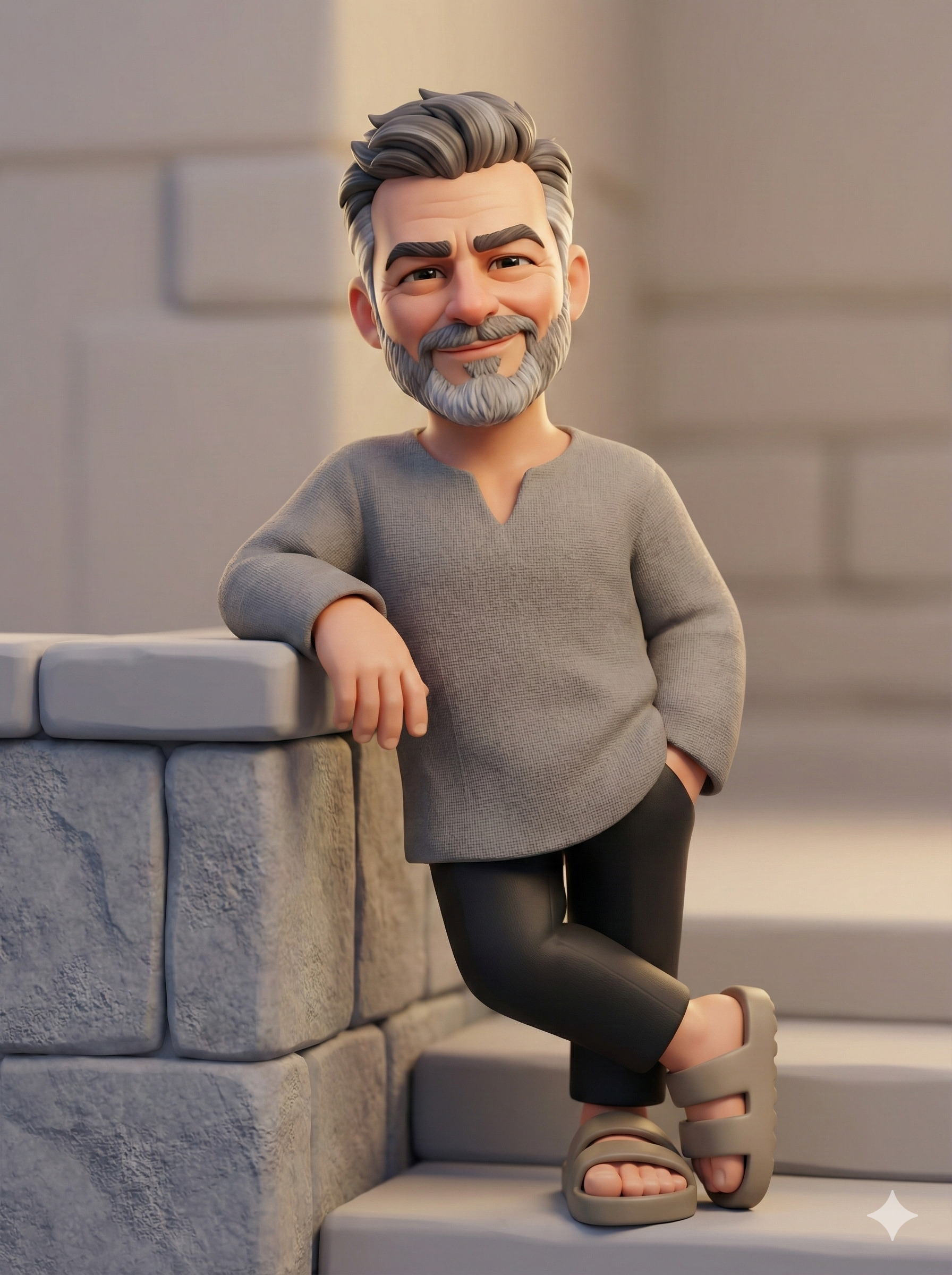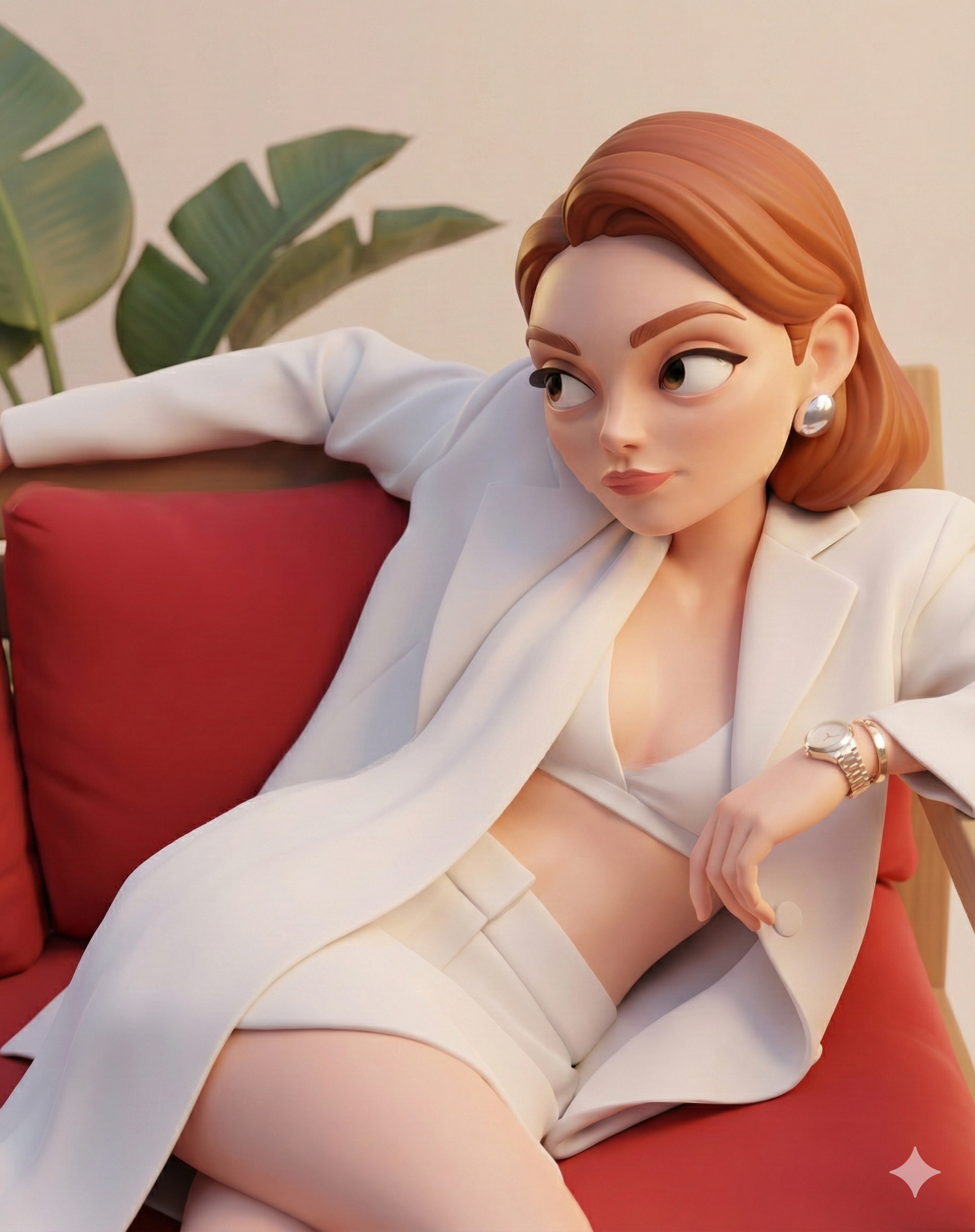 A highly stylized 3D caricature of, with an oversized head, expressive facial features, and playful exaggeration. Rendered in a smooth, polished style with clean materials and soft ambient lighting. Minimal background to emphasize the character’s charm and presence.