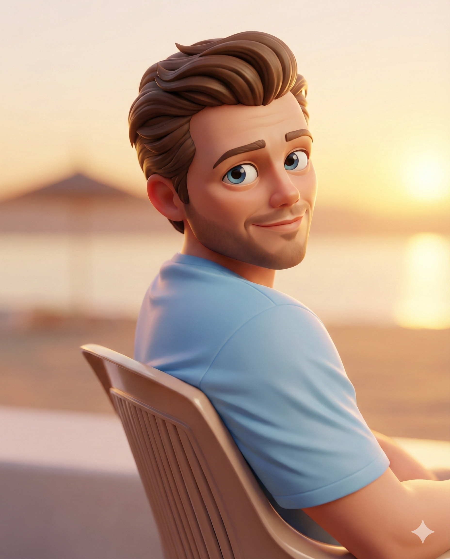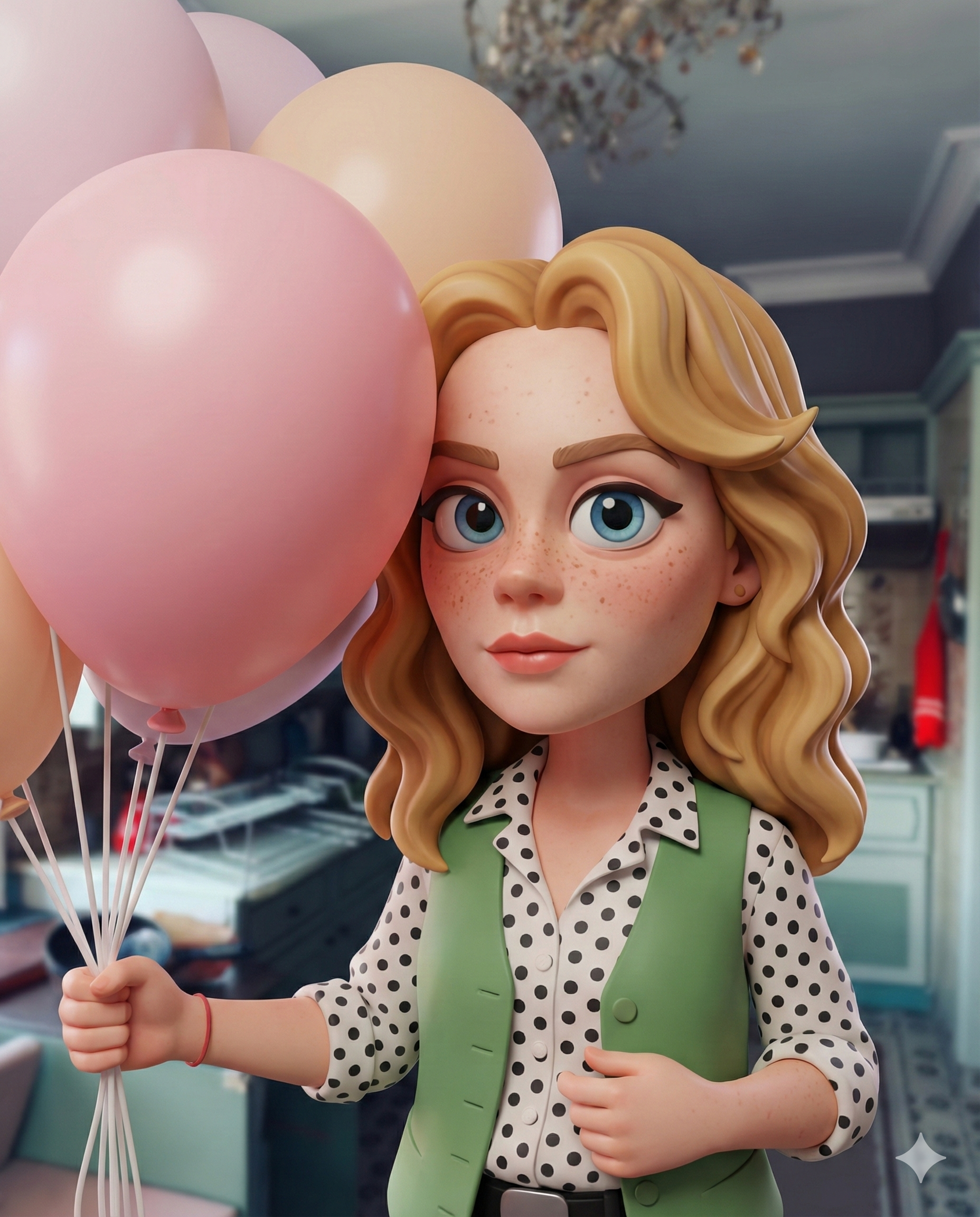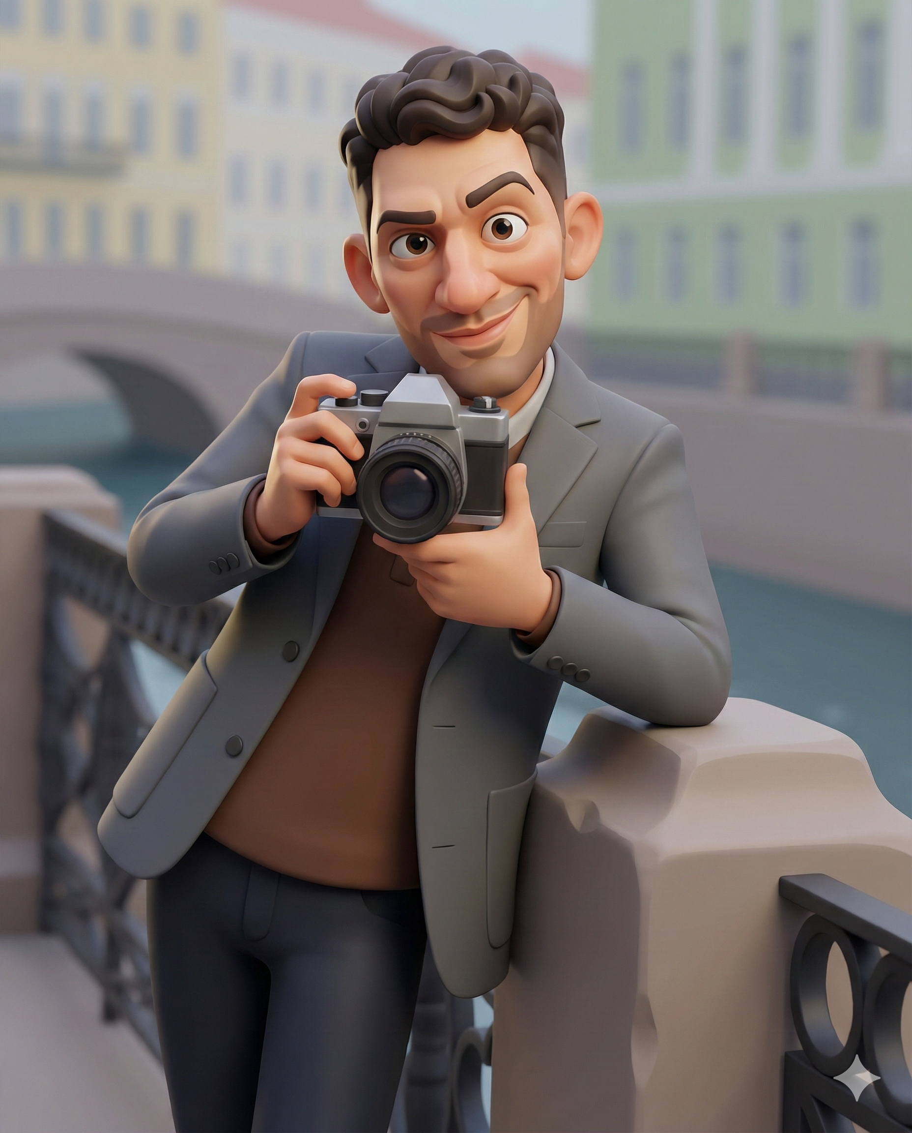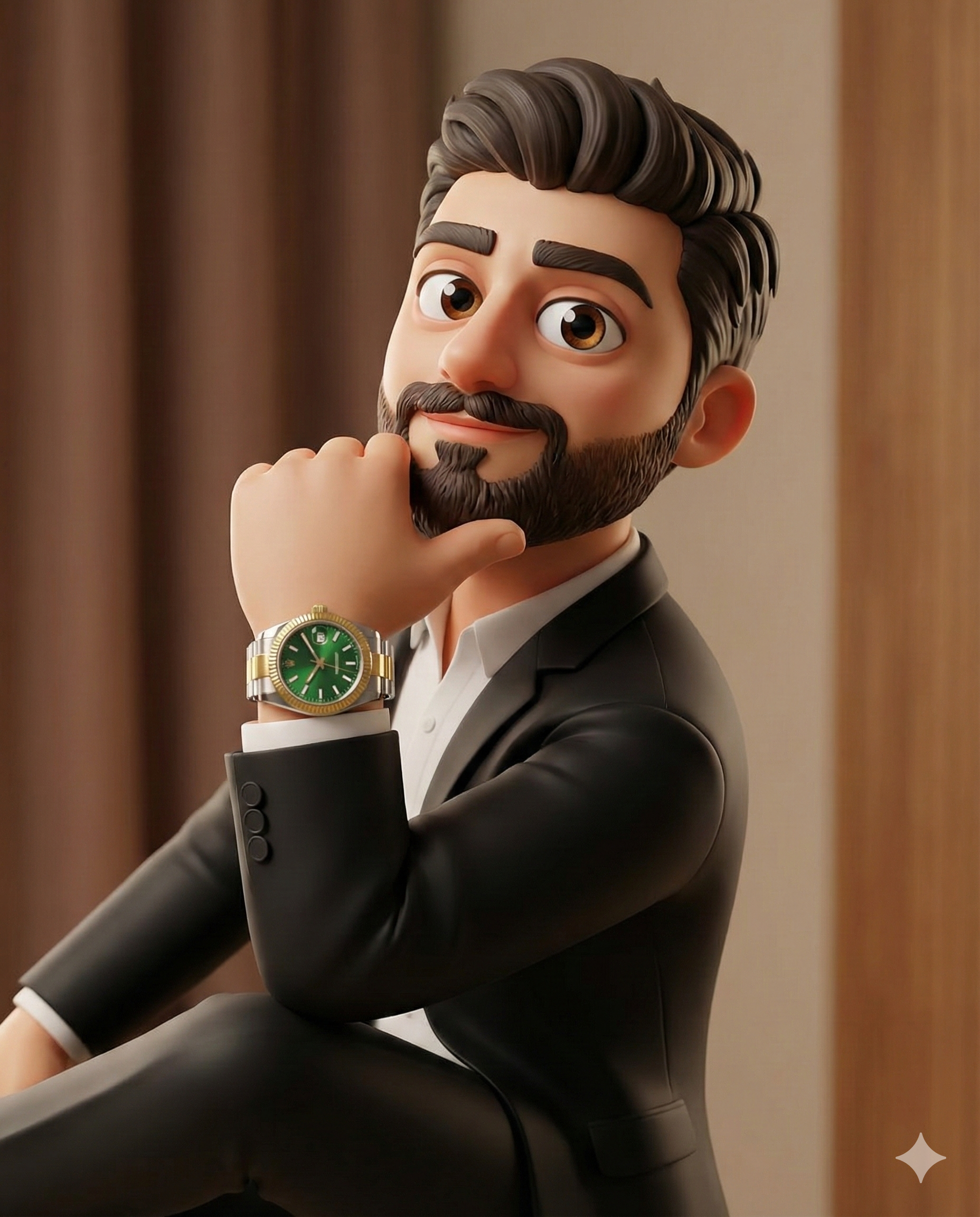 A highly stylized 3D caricature of, with an oversized head, expressive facial features, and playful exaggeration. Rendered in a smooth, polished style with clean materials and soft ambient lighting. Minimal background to emphasize the character’s charm and presence.