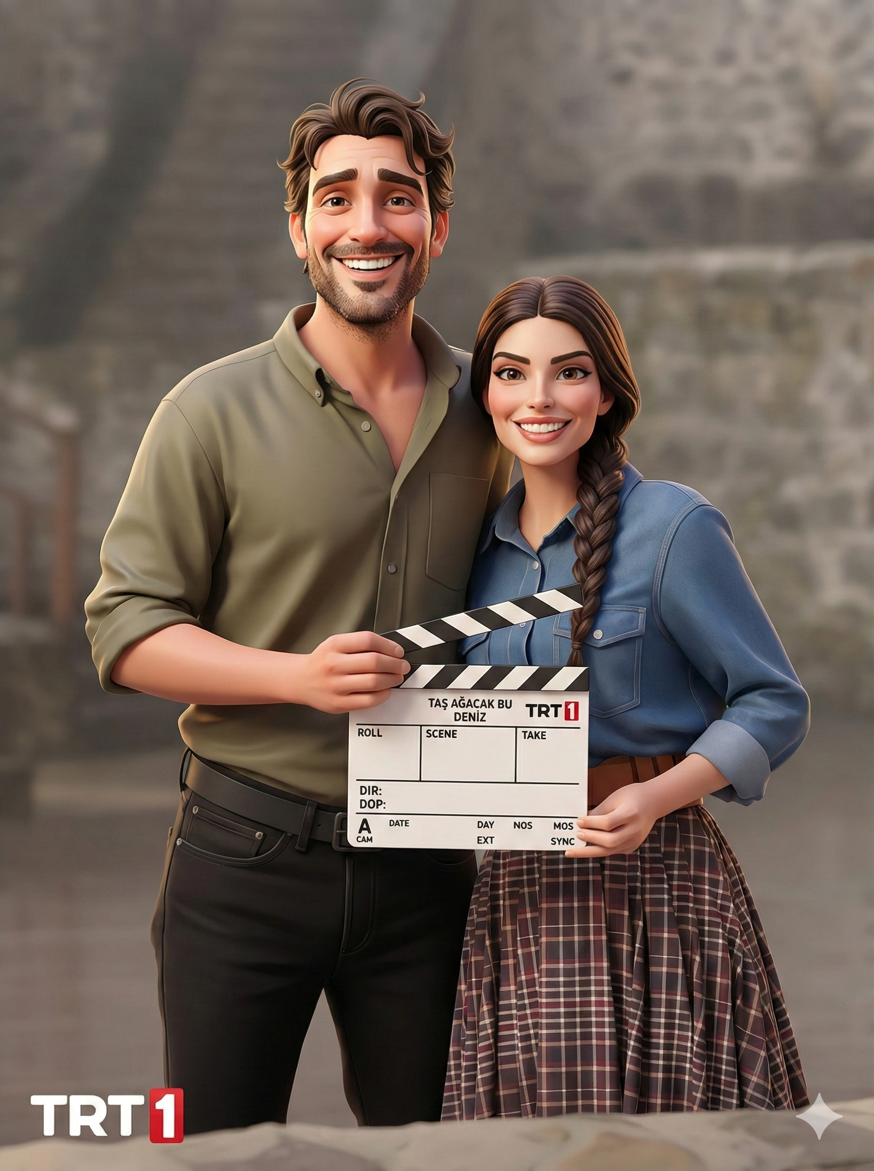 Şu anda Türk televizyonlarında yayınlanan Türk dizilerindeki başrollerin karikatür hallerini oluşturduk. Bunu yaparken de Google Gemini Pro 3'e şu komutu verdik: