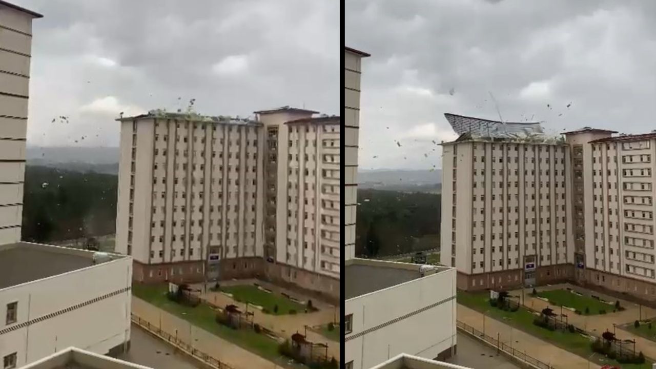 Üniversitesi'ndeki yurdun çatısı uçtu. Uçan çatı öğrencilerin odasının içine kadar girdi. Ayrıca üniversite öğrencilerine dışarı çıkmama uyarısı yapıldı.
