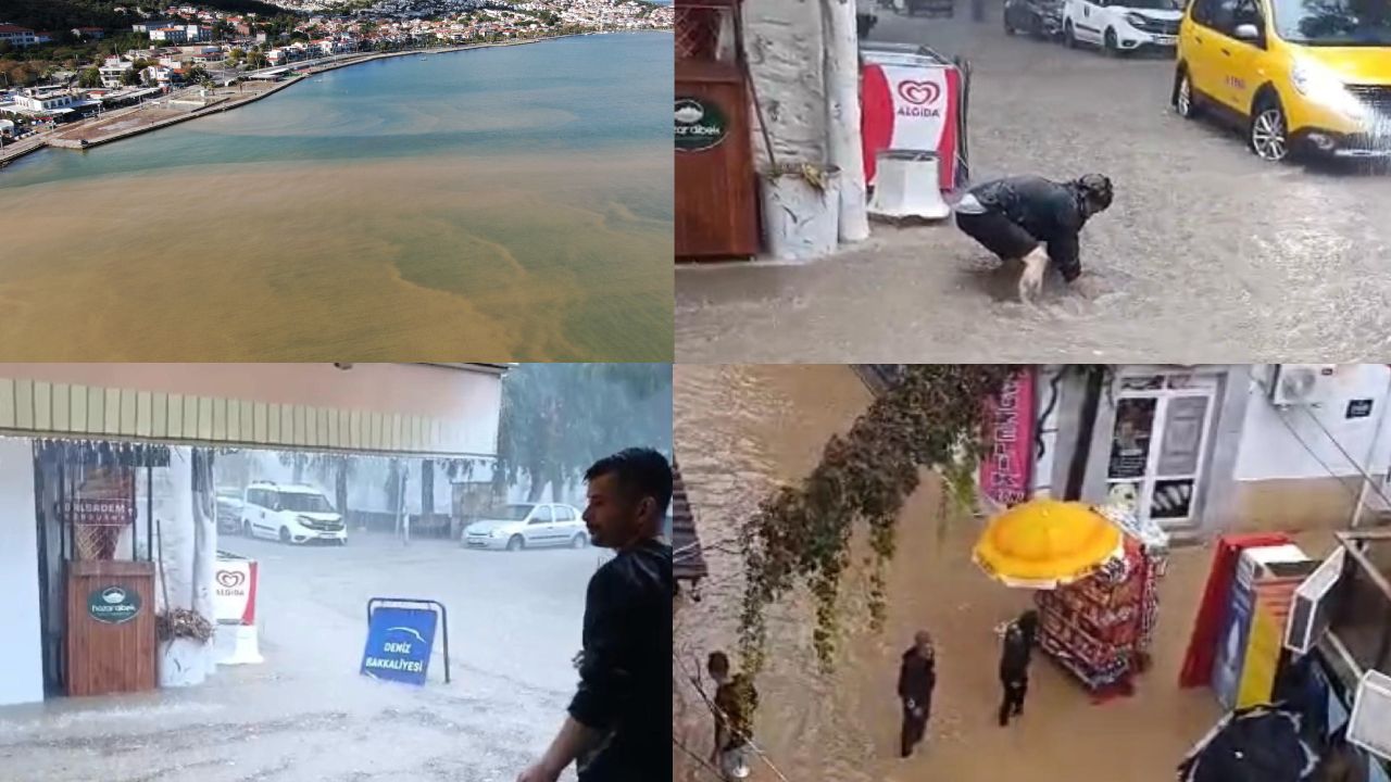 Rögarların ve derelerinde taşmasıyla Foça ilçesindeki cadde ve sokaklar kullanılamaz duruma geldi.