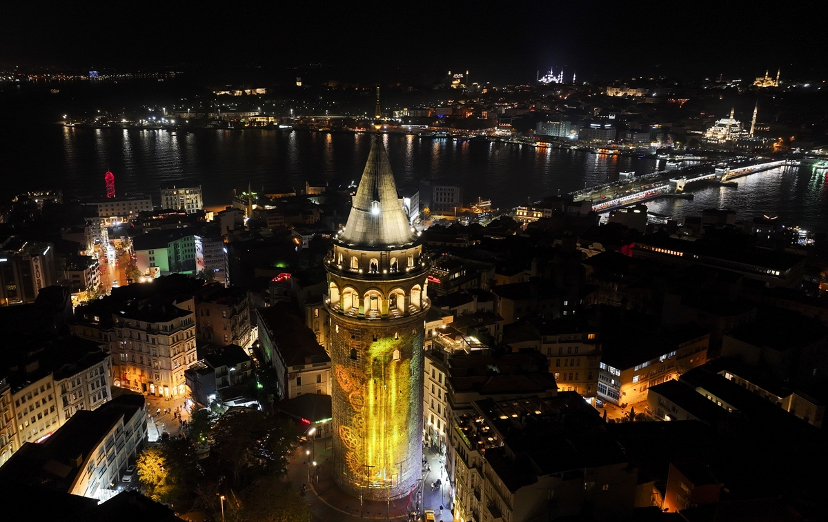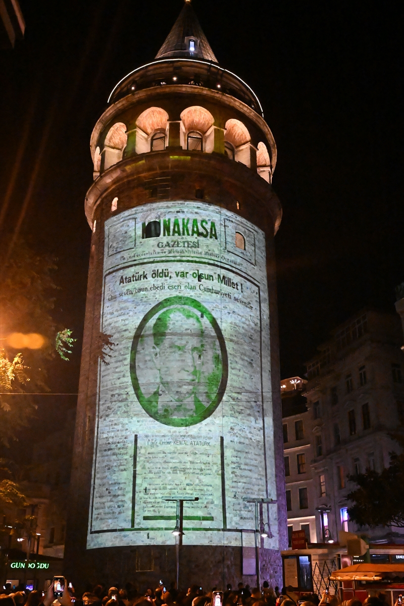 Yine anma etkinlikleri kapsamında Galata Kulesi'nde video mapping gösterisi gerçekleştirildi.