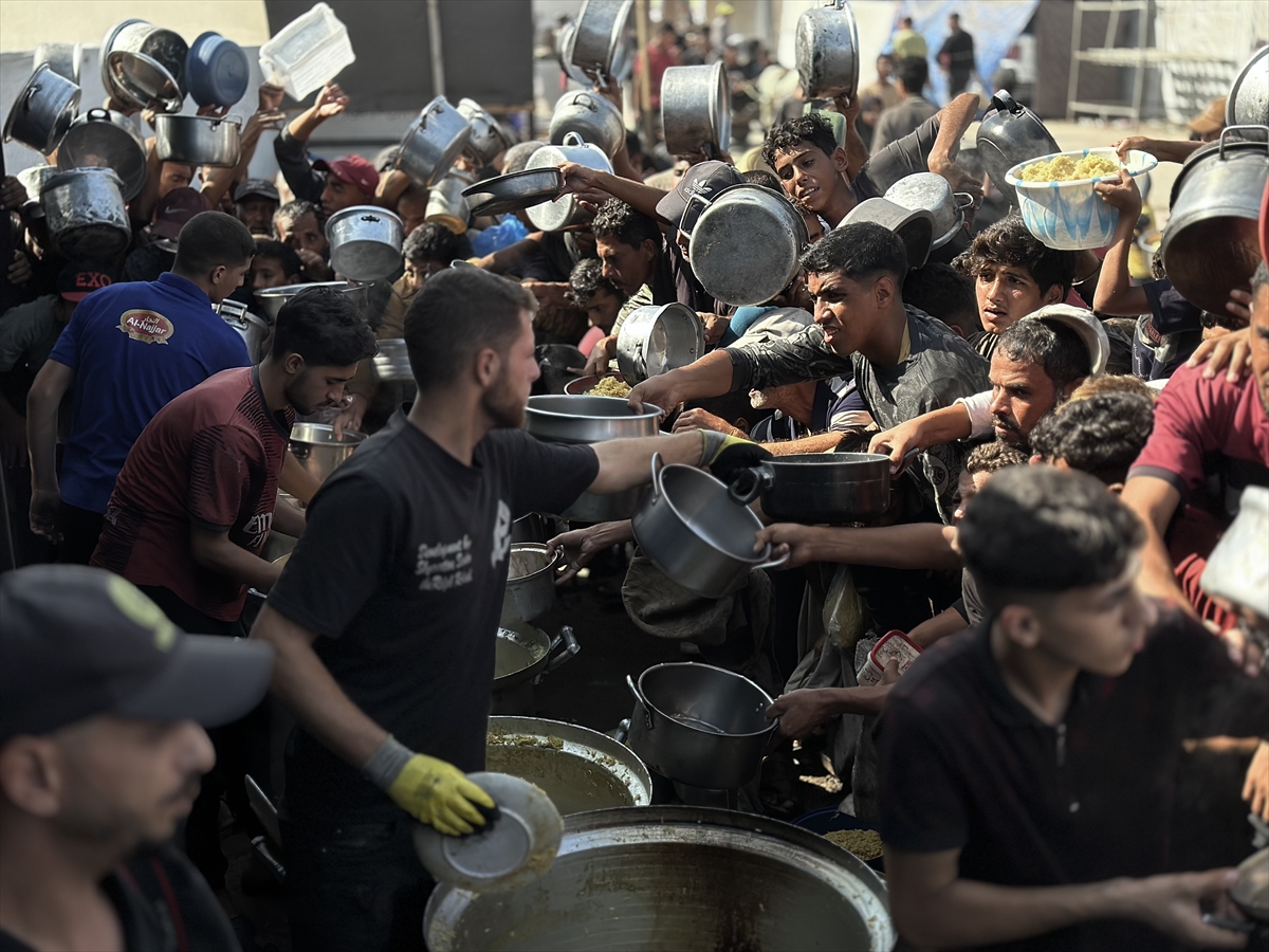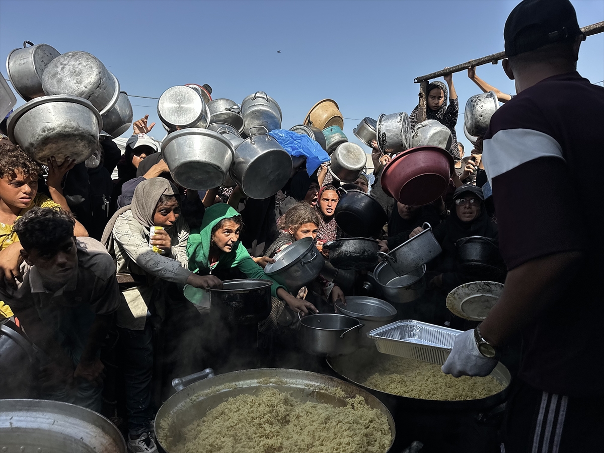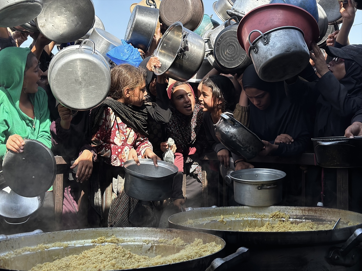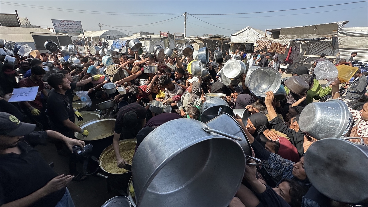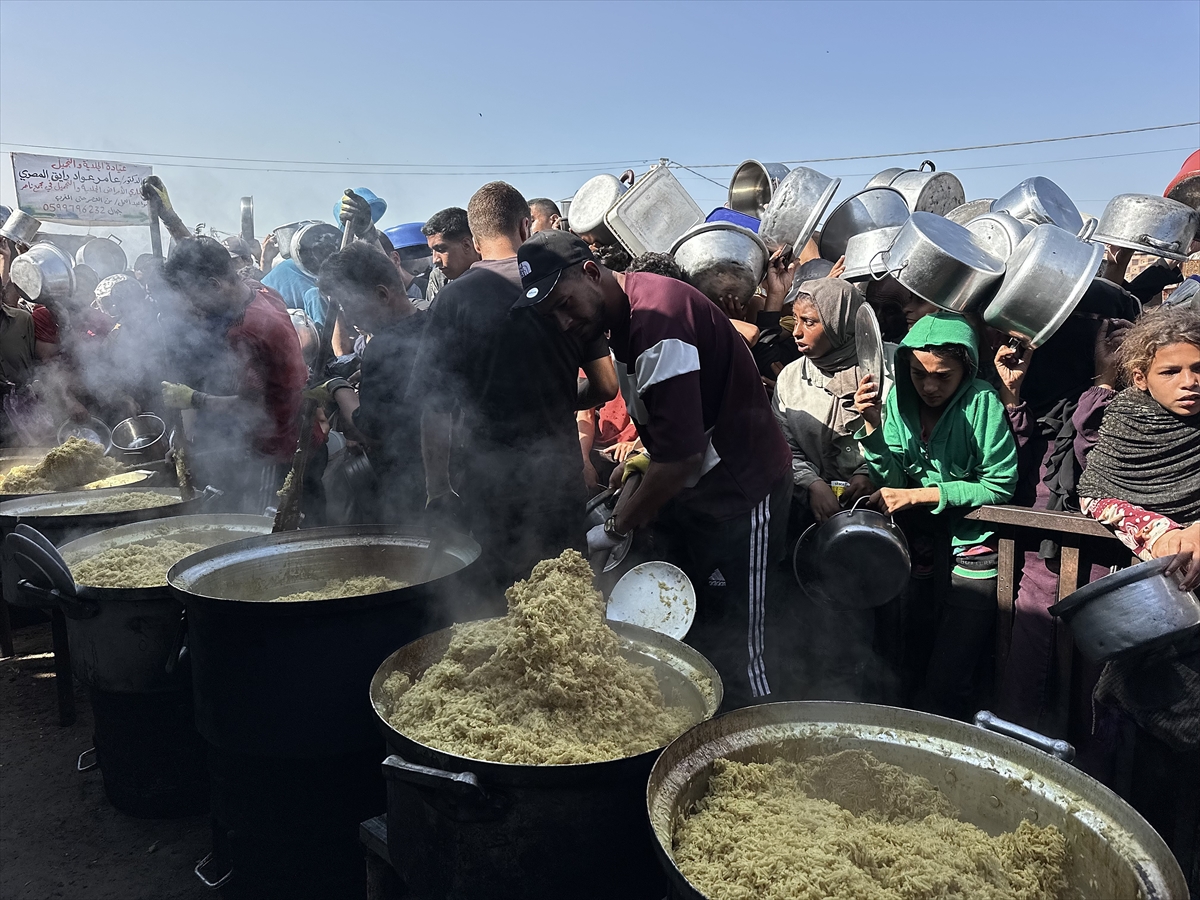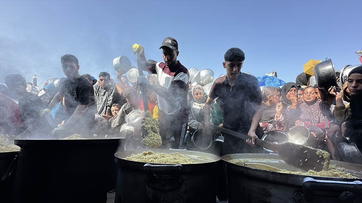 Gazze Şeridi'nin güney kesiminde yer alan el-Mevasi bölgesinde, yerinden edilmiş Filistinlilere sıcak yemek dağıtımı yapıldı. Dağıtım sırasında yoğunluk yaşandı