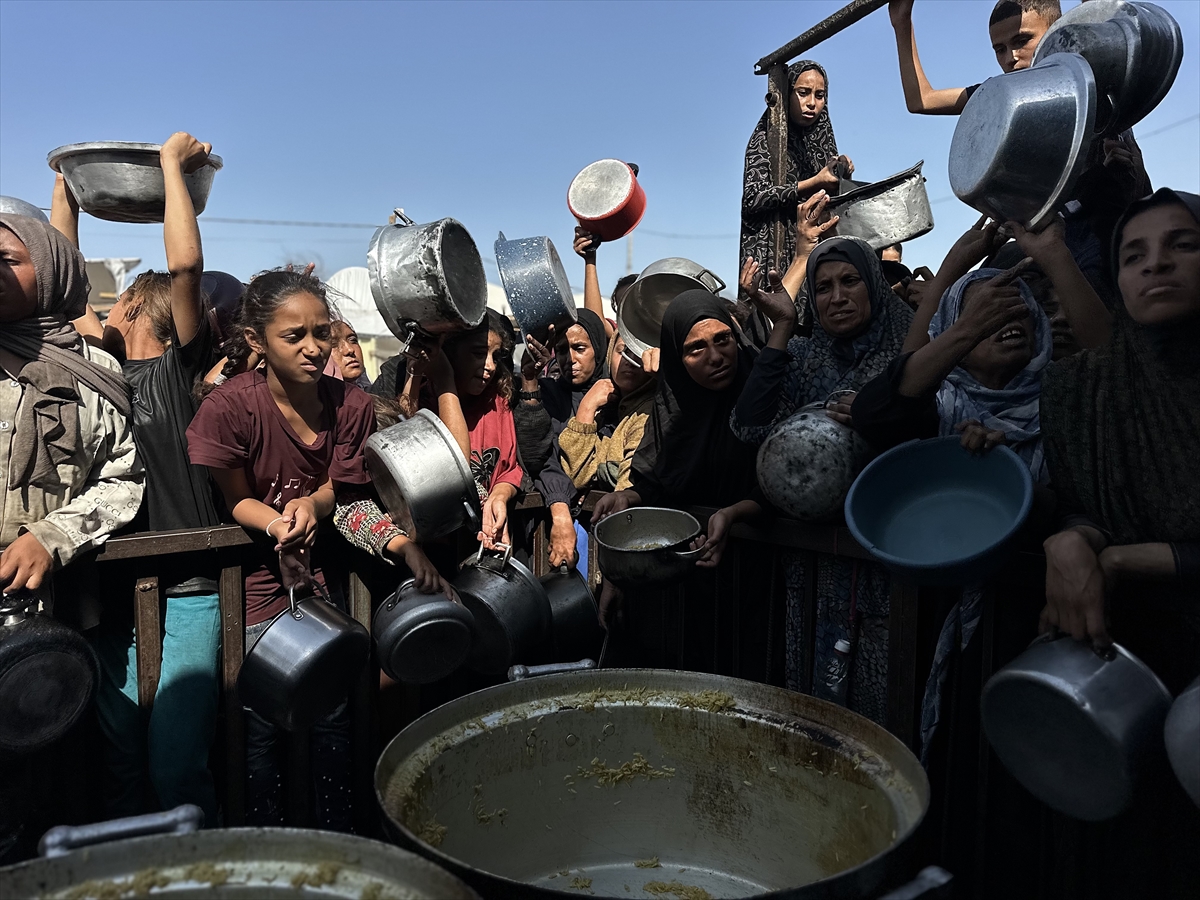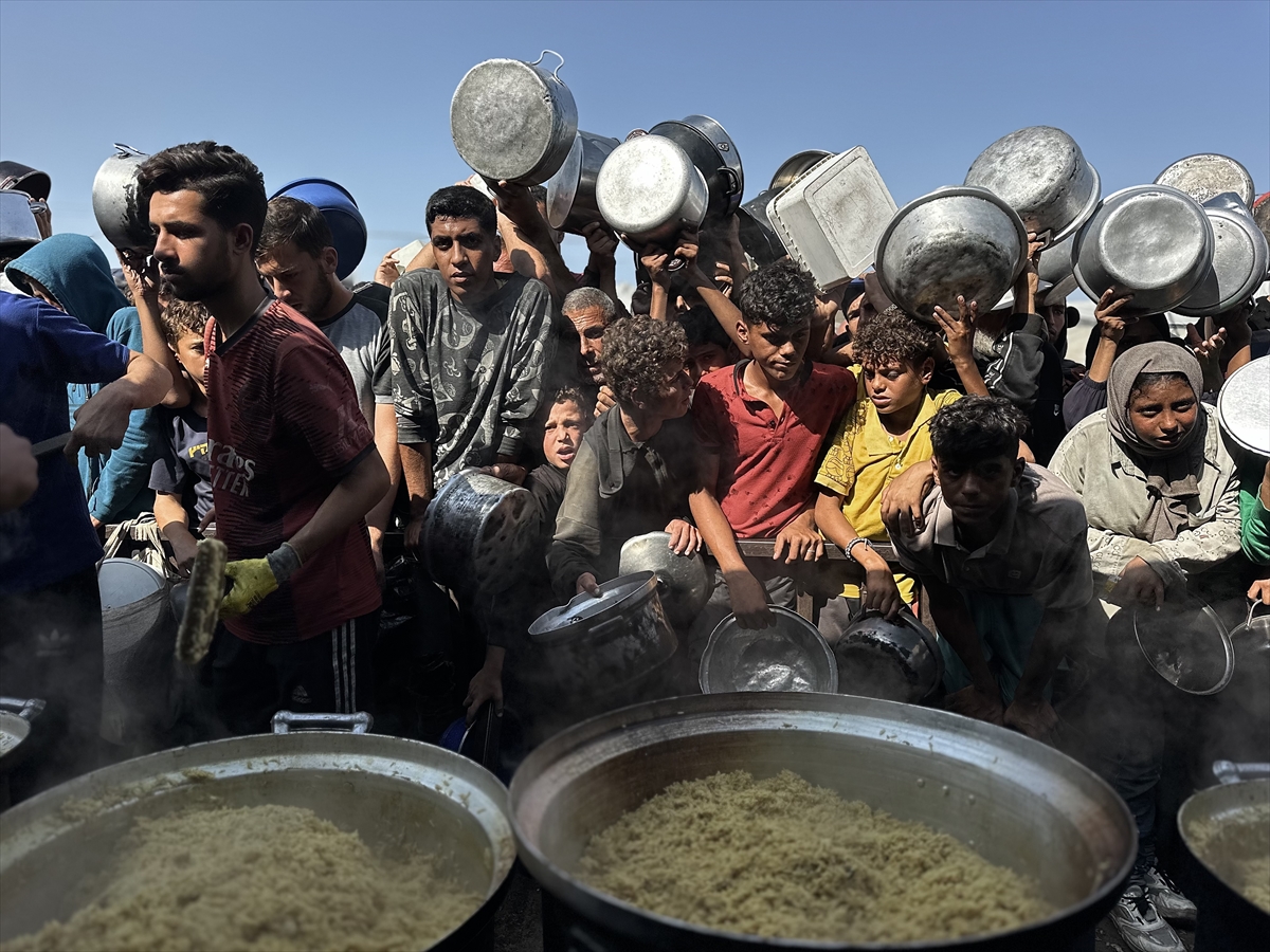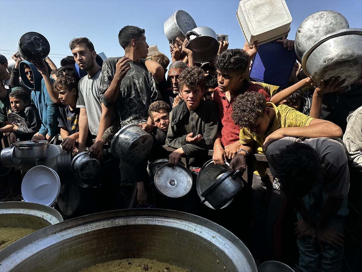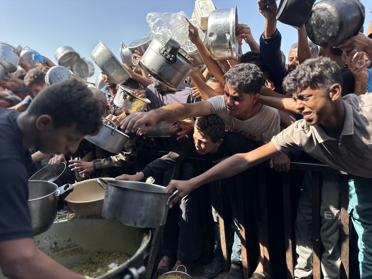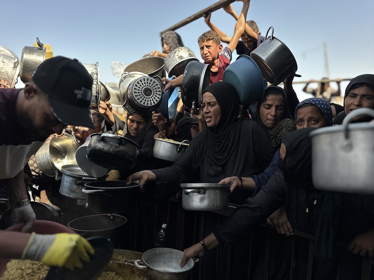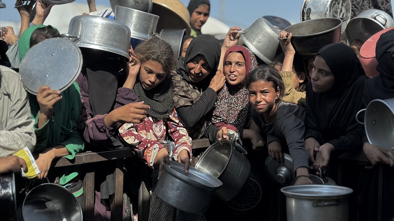 Gazze Şeridi'nin güney kesiminde yer alan el-Mevasi bölgesinde, yerinden edilmiş Filistinlilere sıcak yemek dağıtımı yapıldı. Dağıtım sırasında yoğunluk yaşandı