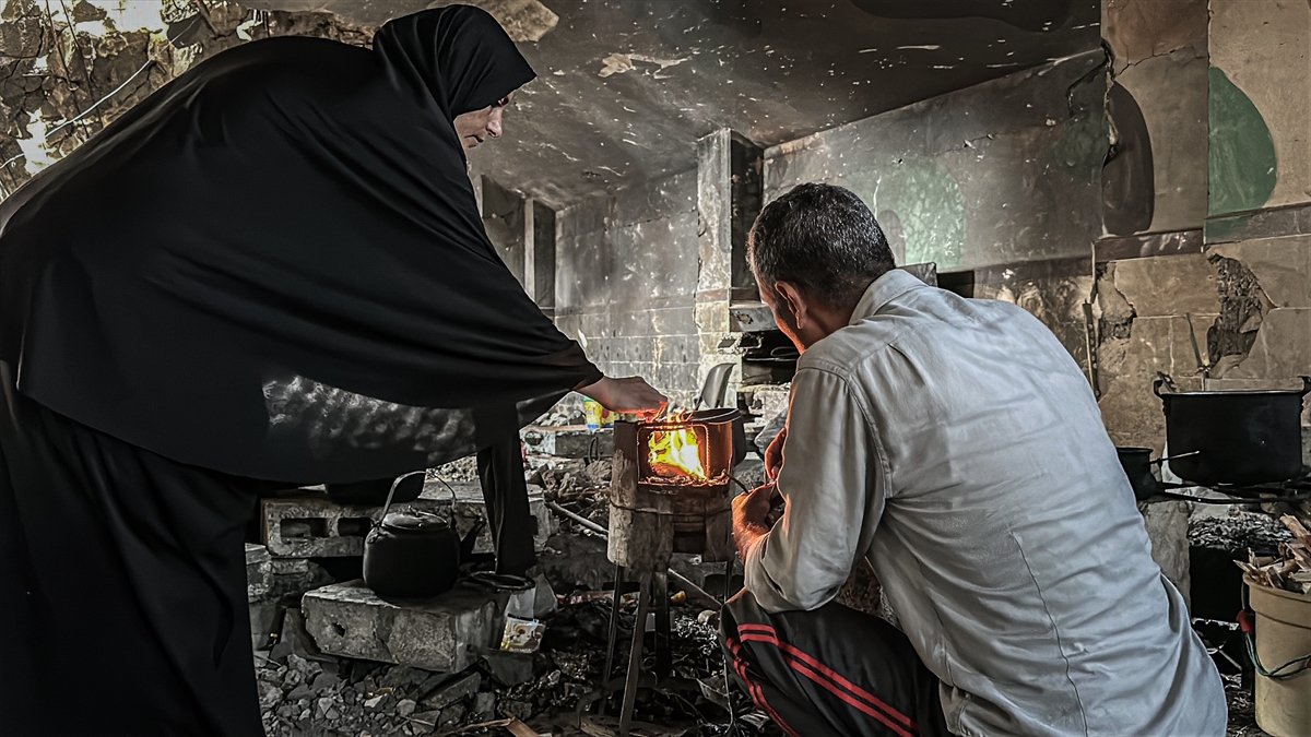 Soğuk kış günleri yaklaşırken, Muhammed sınırlı imkanlarla mekanı temizleyip düzenleyerek ailesi için geçici bir sığınak oluşturdu.