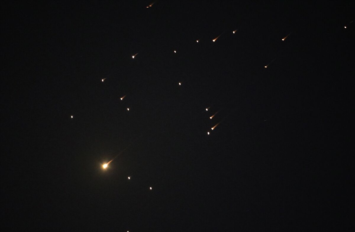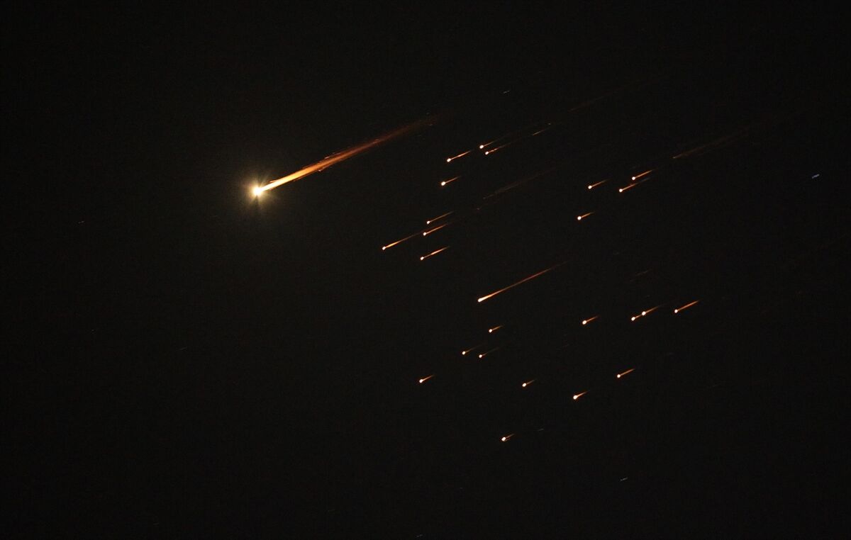İran'dan İsrail'e atılan füzeler, işgal altındaki Batı Şeria'nın El Halil kentinin semalarında görüntülendi. İran atılan füzeler havada küçük bombalara ayrılıyor. Saldırı sonrası İsrail hava savunma sistemi devreye girerek füzeleri etkisiz hale getirmeye çalıştı.