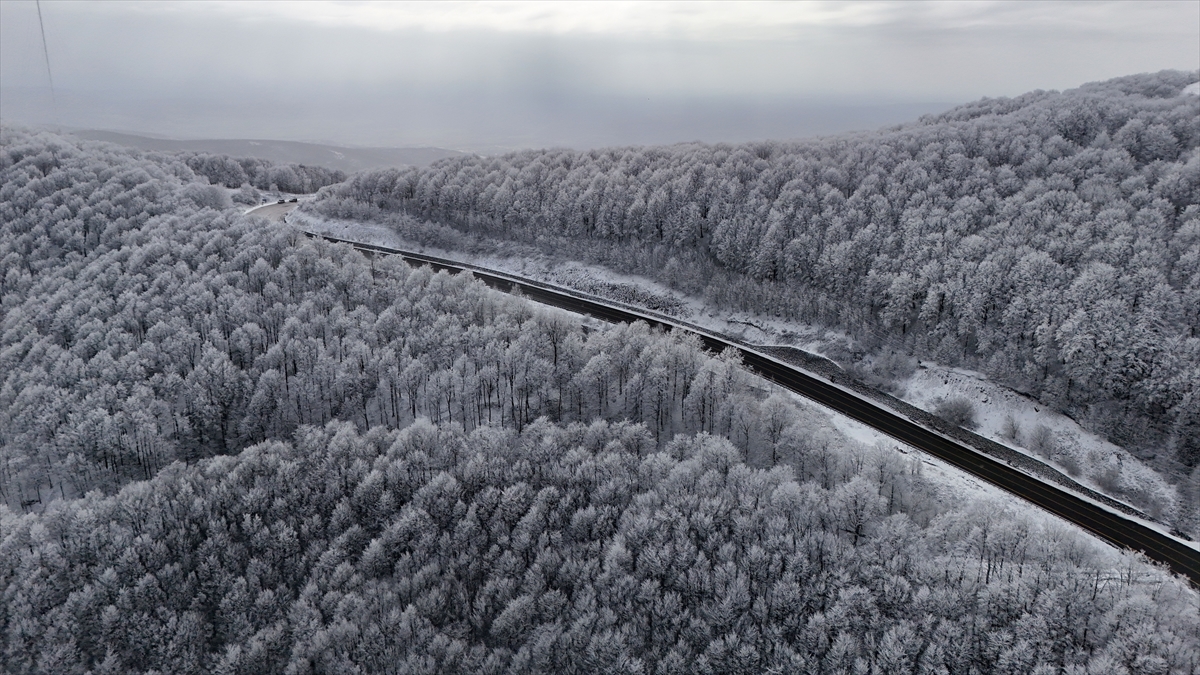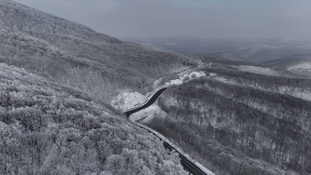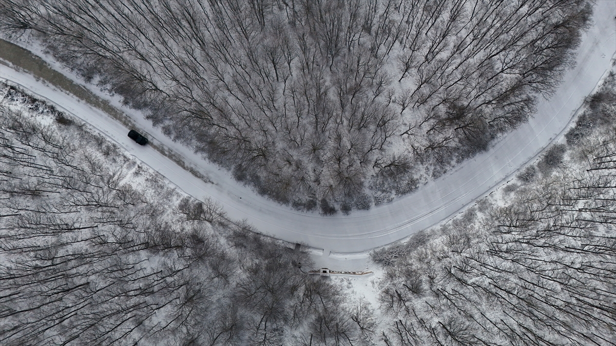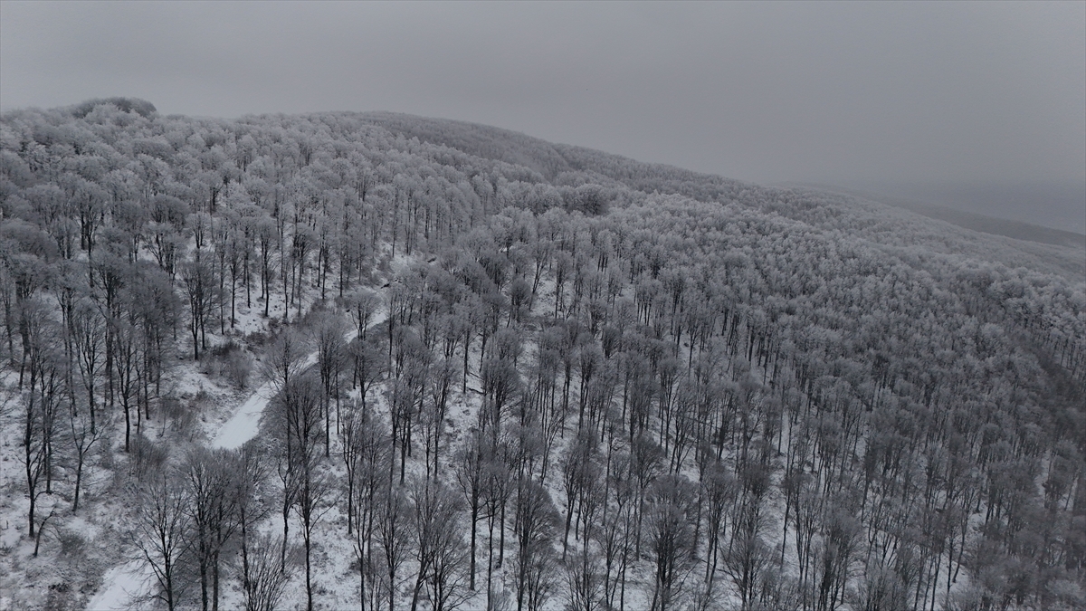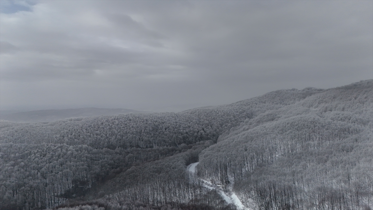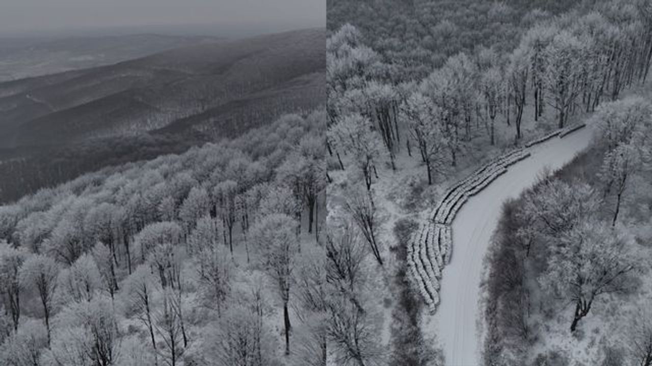 Kırklareli’nin yüksek kesimlerinde etkili olan kar yağışıyla beyaza bürünen Istranca Ormanları, dronla görüntülendi.