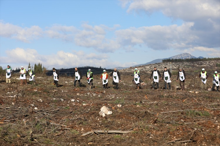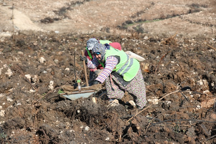 Toprağın üst kısmını temizleyen ekipler, toprağı işleyerek fidan dikimine hazır hale getiriyor.