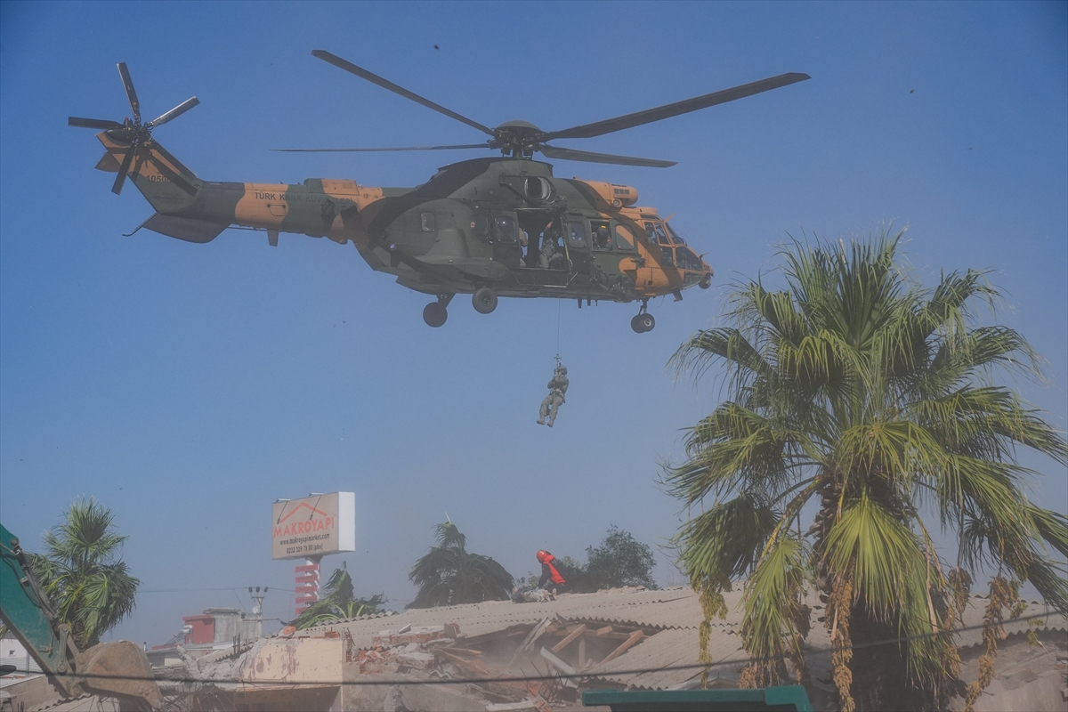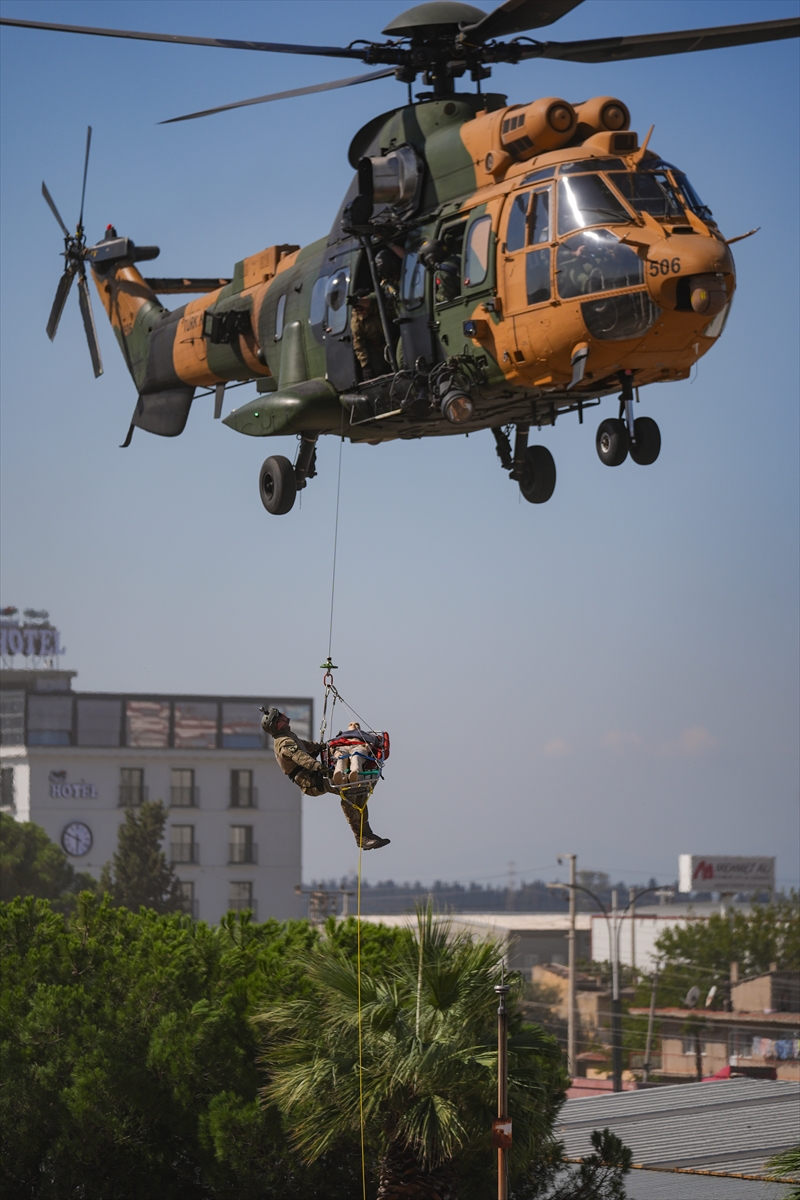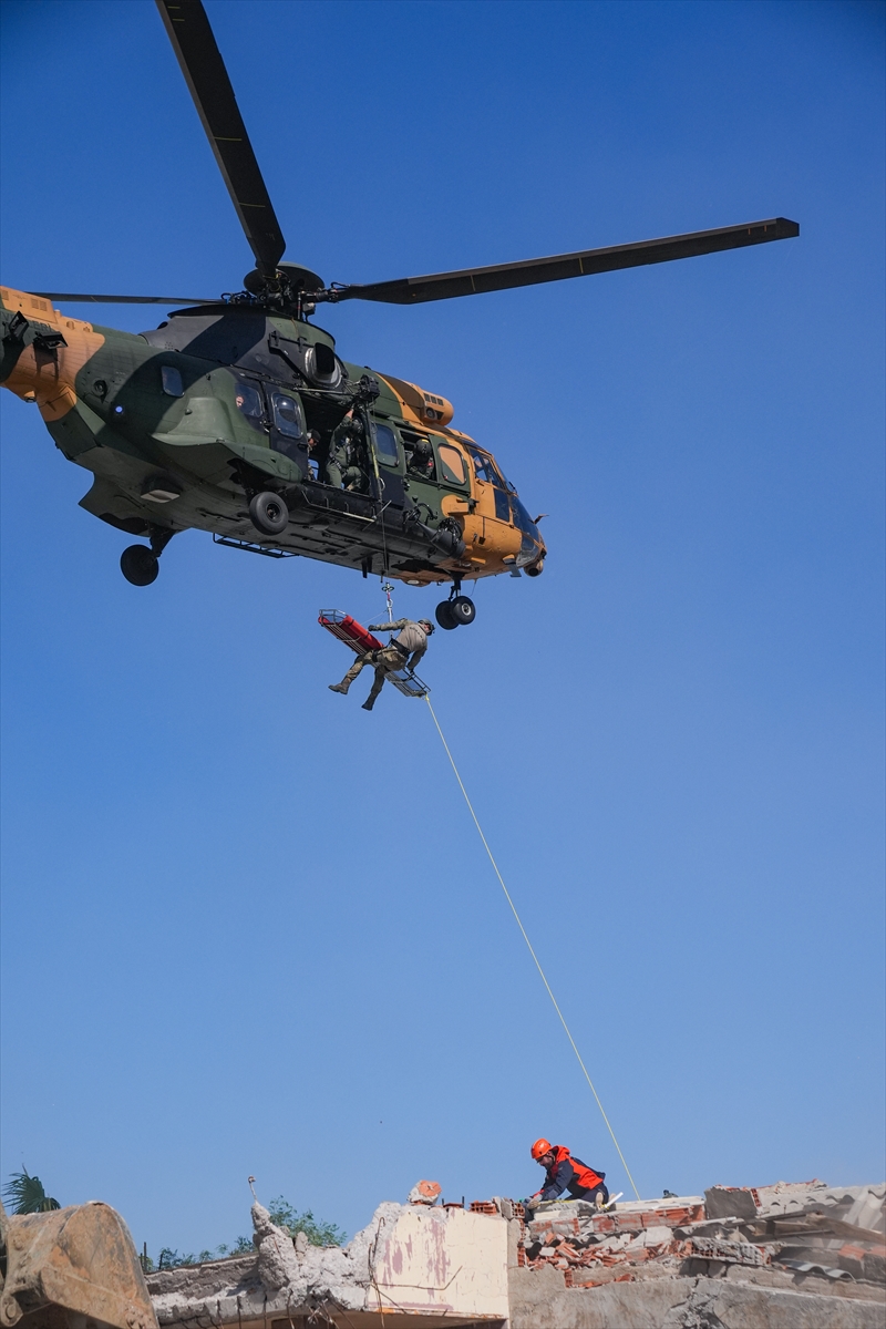Menemen Ulus Mahallesi'nde kamuya ait bir bina yıkılarak, ekipler tarafından arama kurtarma faaliyeti yürütüldü. Senaryo gereği çatıda yaralı olarak bulunan bir vatandaş, helikopterle tahliye edildi. Ayrıca enkazda mahsur alan iki köpek de ekiplerce kurtarıldı.