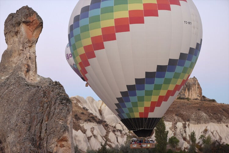 Nevşehir''in Göreme beldesi ve çevresindeki kalkış alanlarında gün doğumu vaktinde hazırlanan sıcak hava balonları, turistlerin sepetlere alınmasının ardından peş peşe bölge semalarına yükseldi.