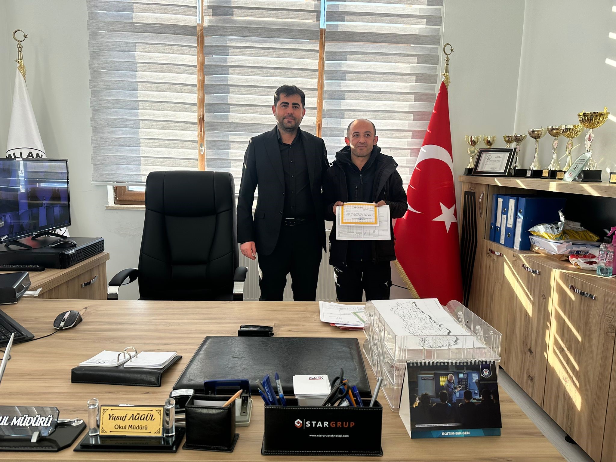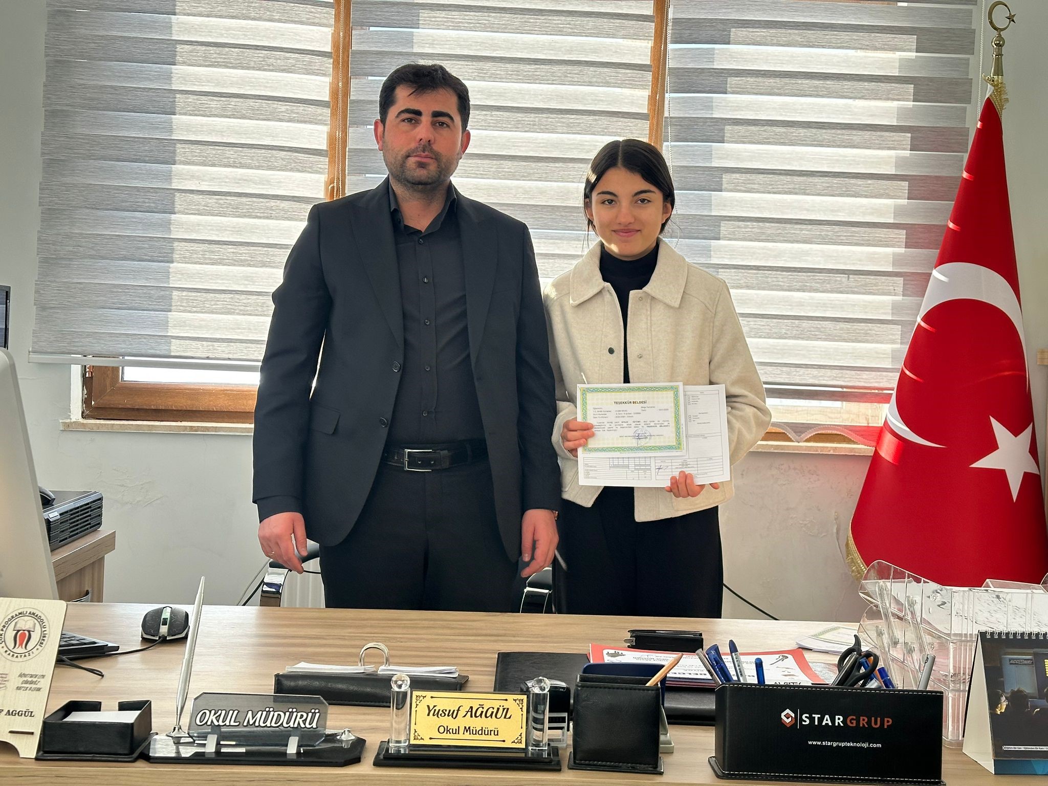 Okul Müdürü Yusuf Ağgül, öğrencilerin bir dönem boyunca döktüğü alın terinin karşılığı olan karne ve başarı belgelerini bizzat velilere takdim etti.