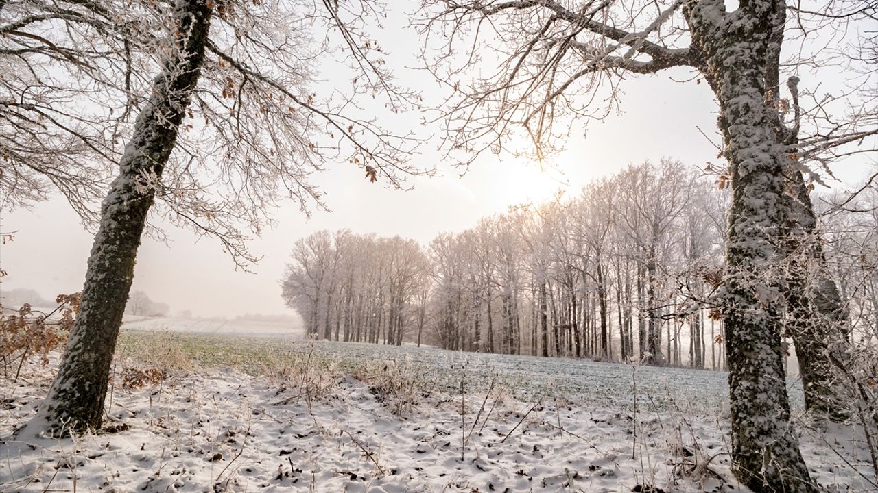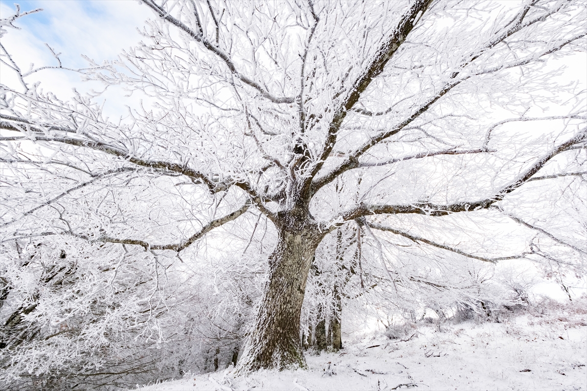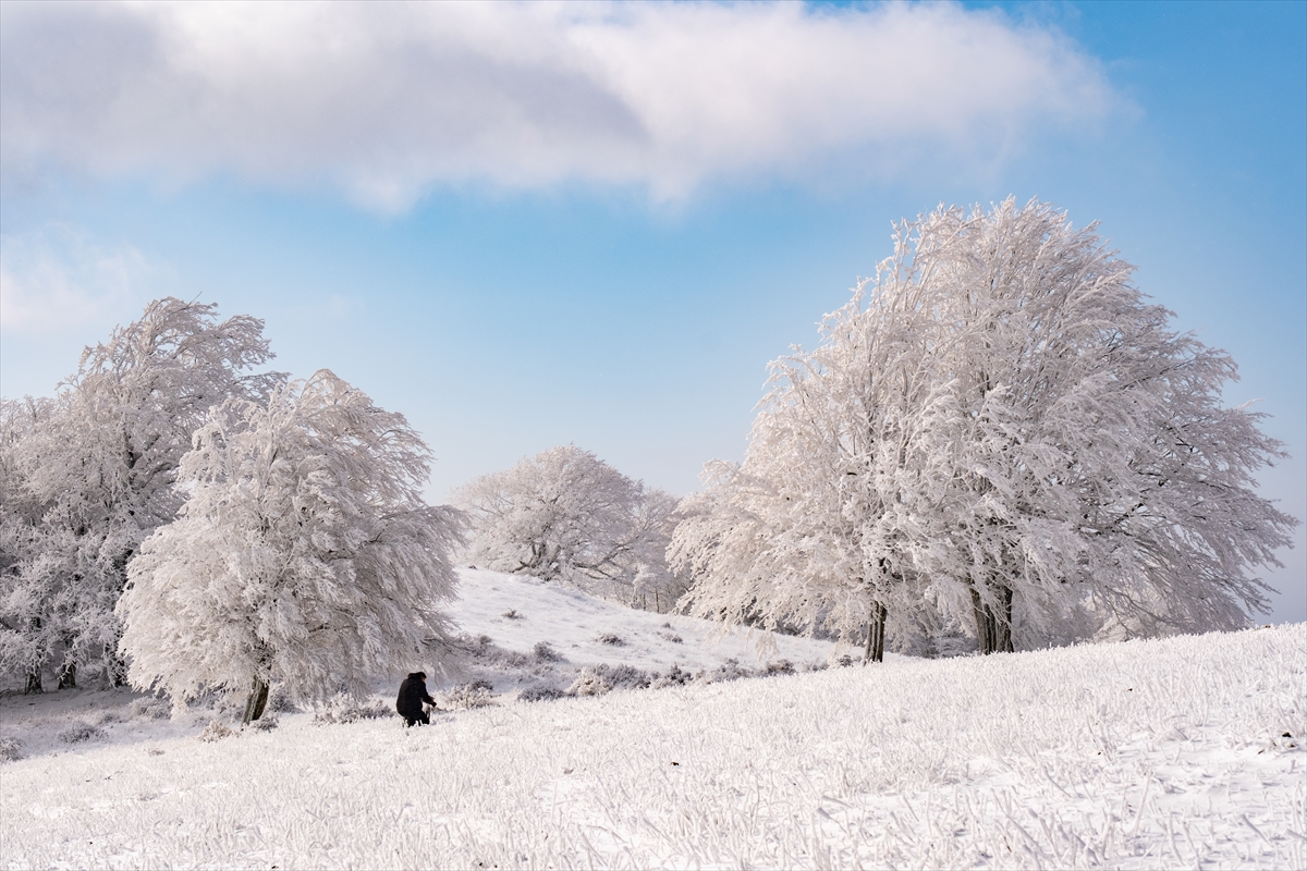 Hava sıcaklığının sıfırın altında 5 derece ölçüldüğü Mahyatepe mevkisinde, ormanlık alanda kartpostallık görüntüler oluştu.