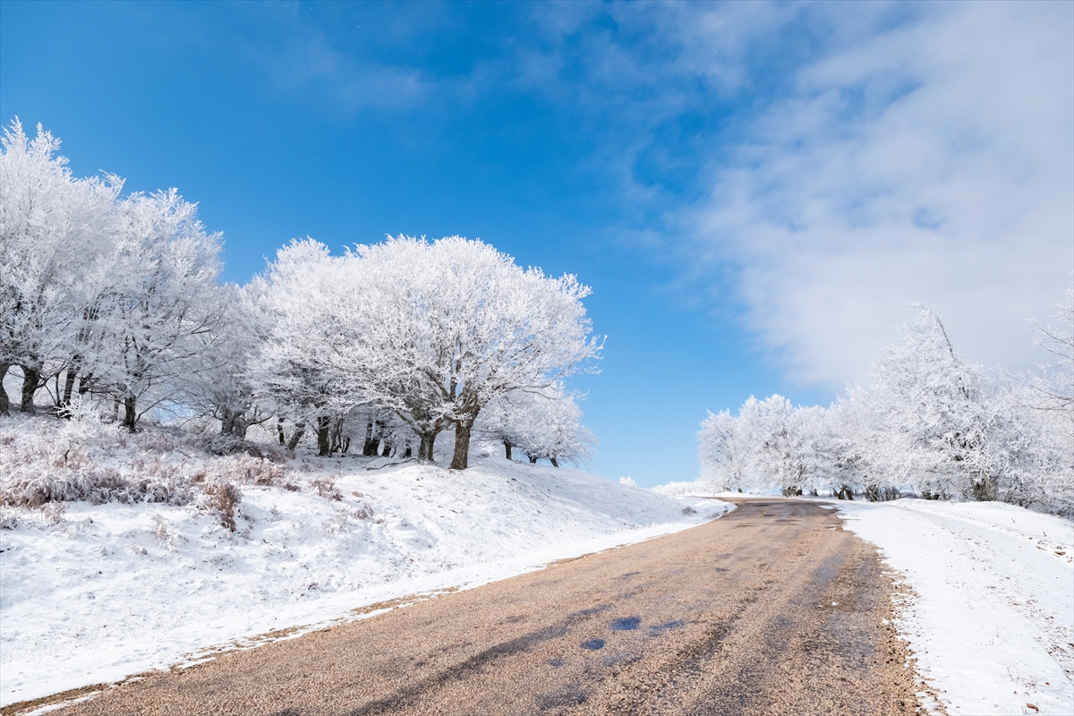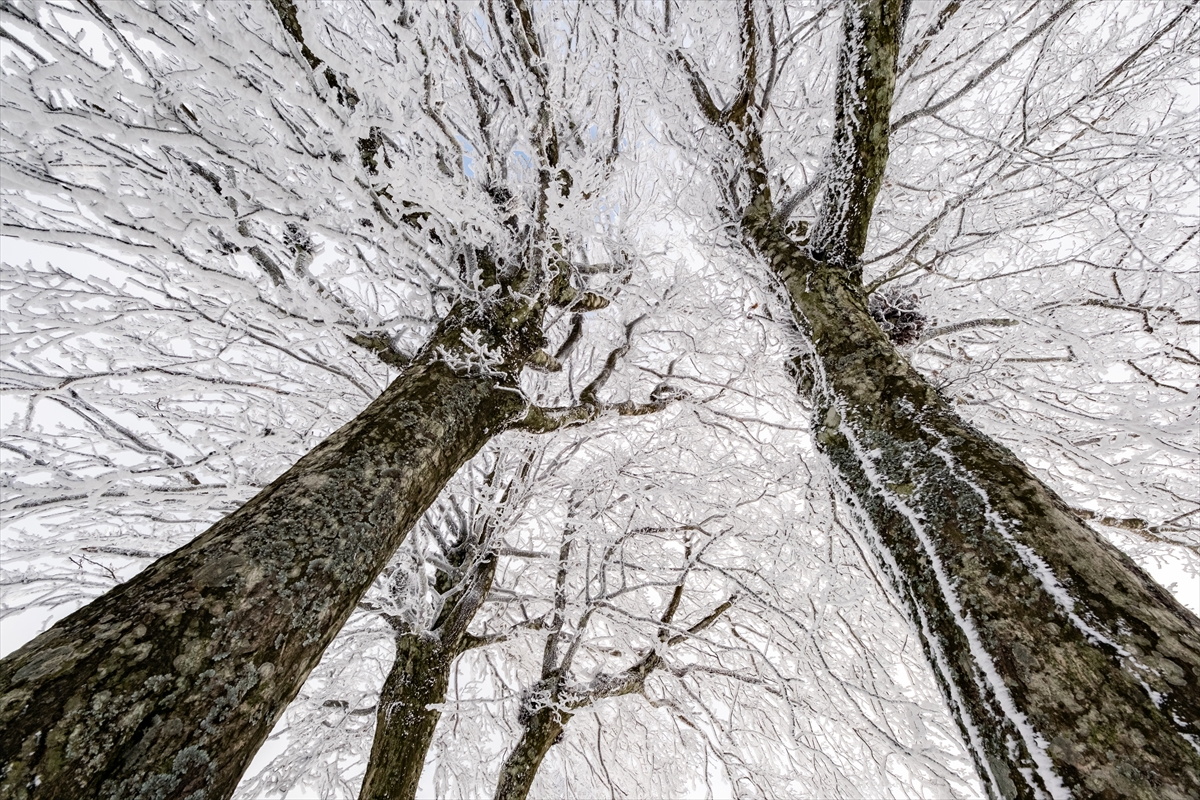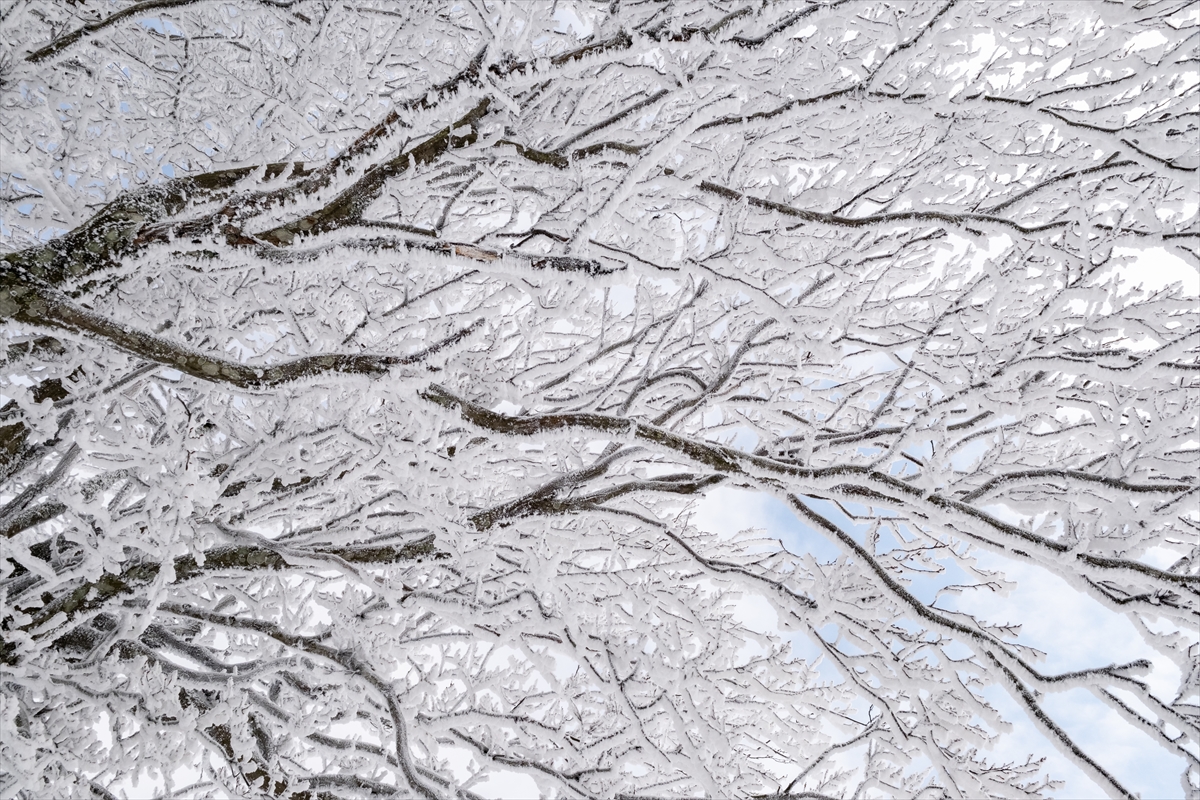 Beyaza bürünen ormanlık alanlar dronla görüntülendi.