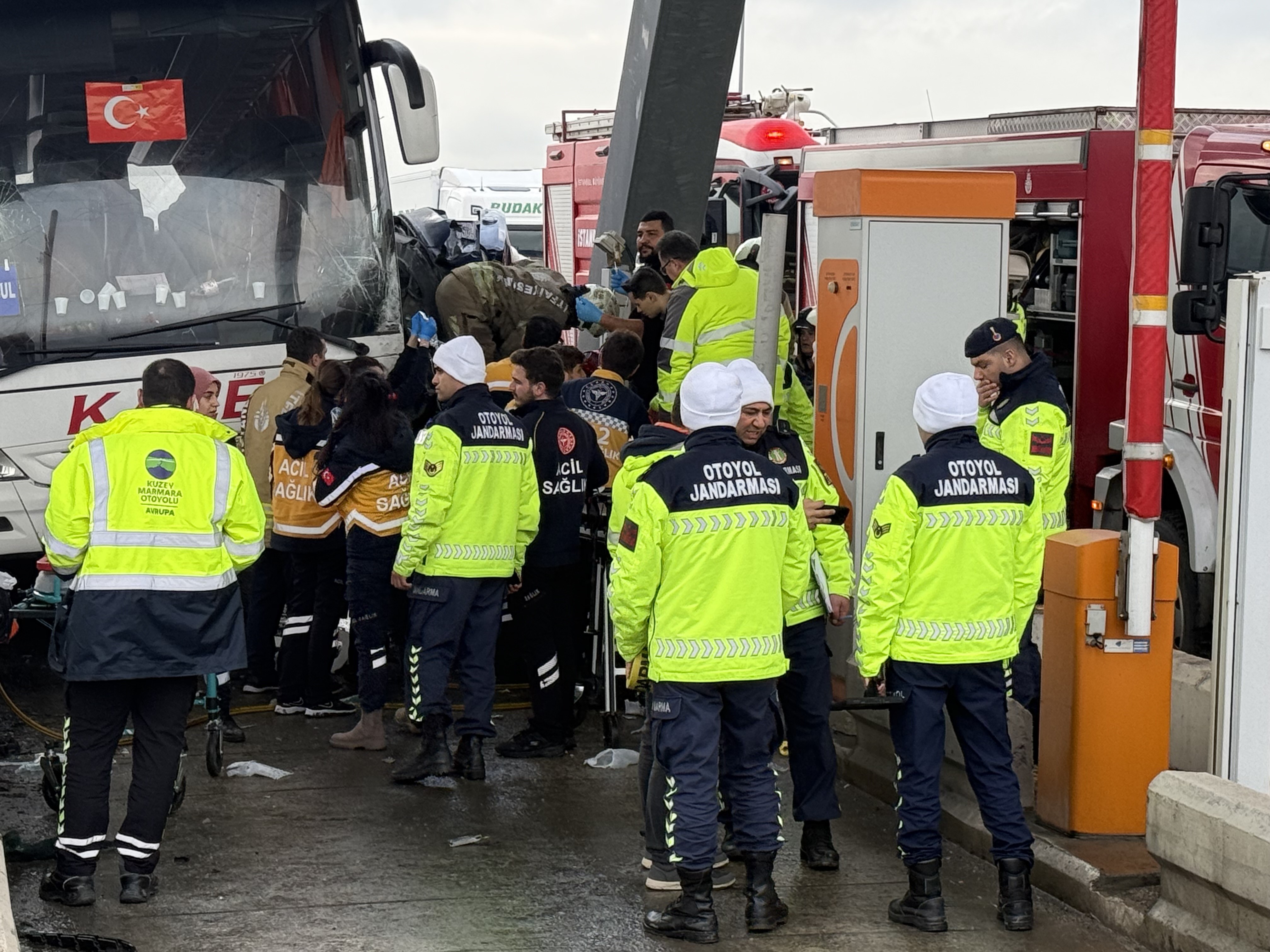 Kaza, dün saat 16.00 sularında Silivri ilçesi Kuzey Marmara Otoyolu Kınalı gişeleri mevkiinde gerçekleşti. Edinilen bilgilere göre, İstanbul yönüne seyreden, 59 ALV 748 plakalı yolcu otobüsü ile 59 ADN 734 plakalı otomobil gişelere geldiği sırada çarpıştı.