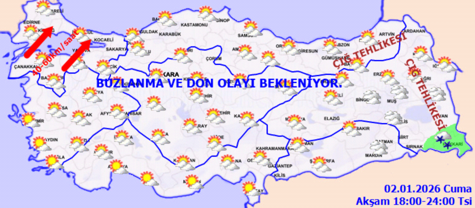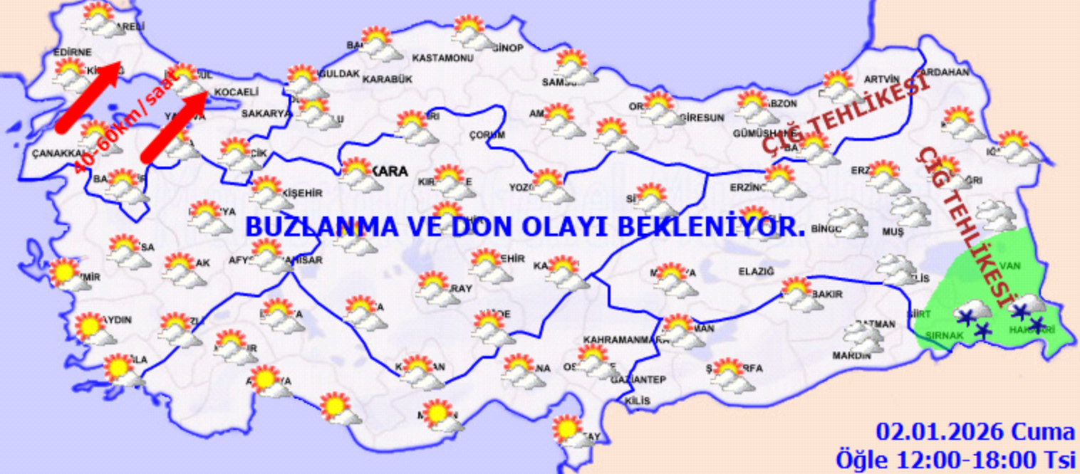 İç ve doğu kesimlerinde buzlanma ve don olayı bekleniyor.