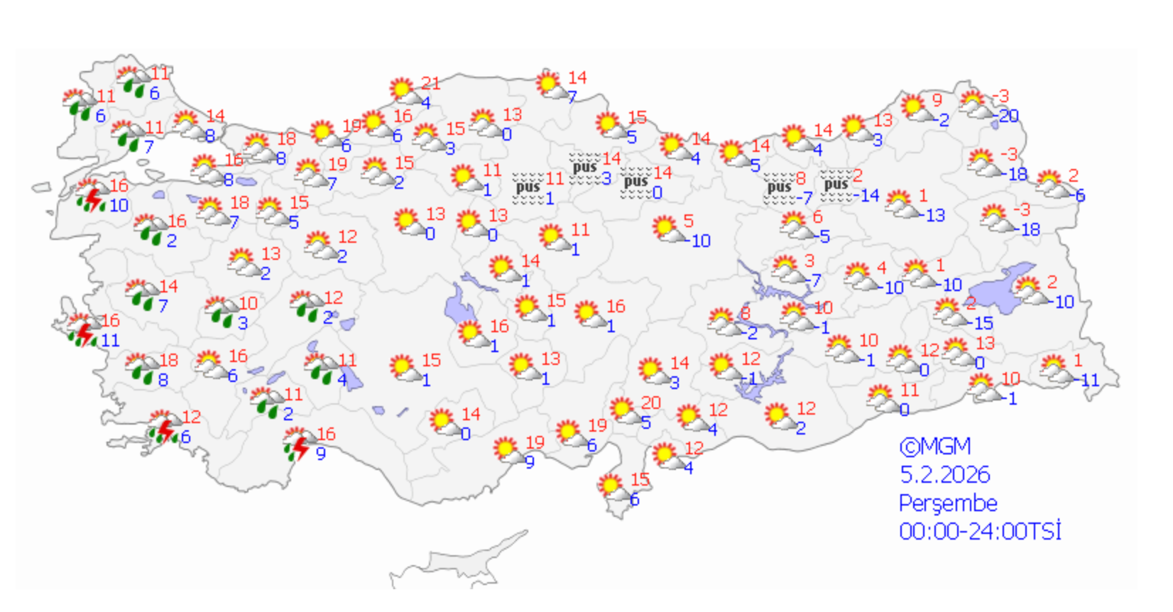 Başkent Ankara'da ise bugün ve yarın yağış beklenmiyor. Ankara'da hava sıcaklığı perşembe günü 13 dereceye kadar yükselecek, cuma günü 8 dereceye düşecek.