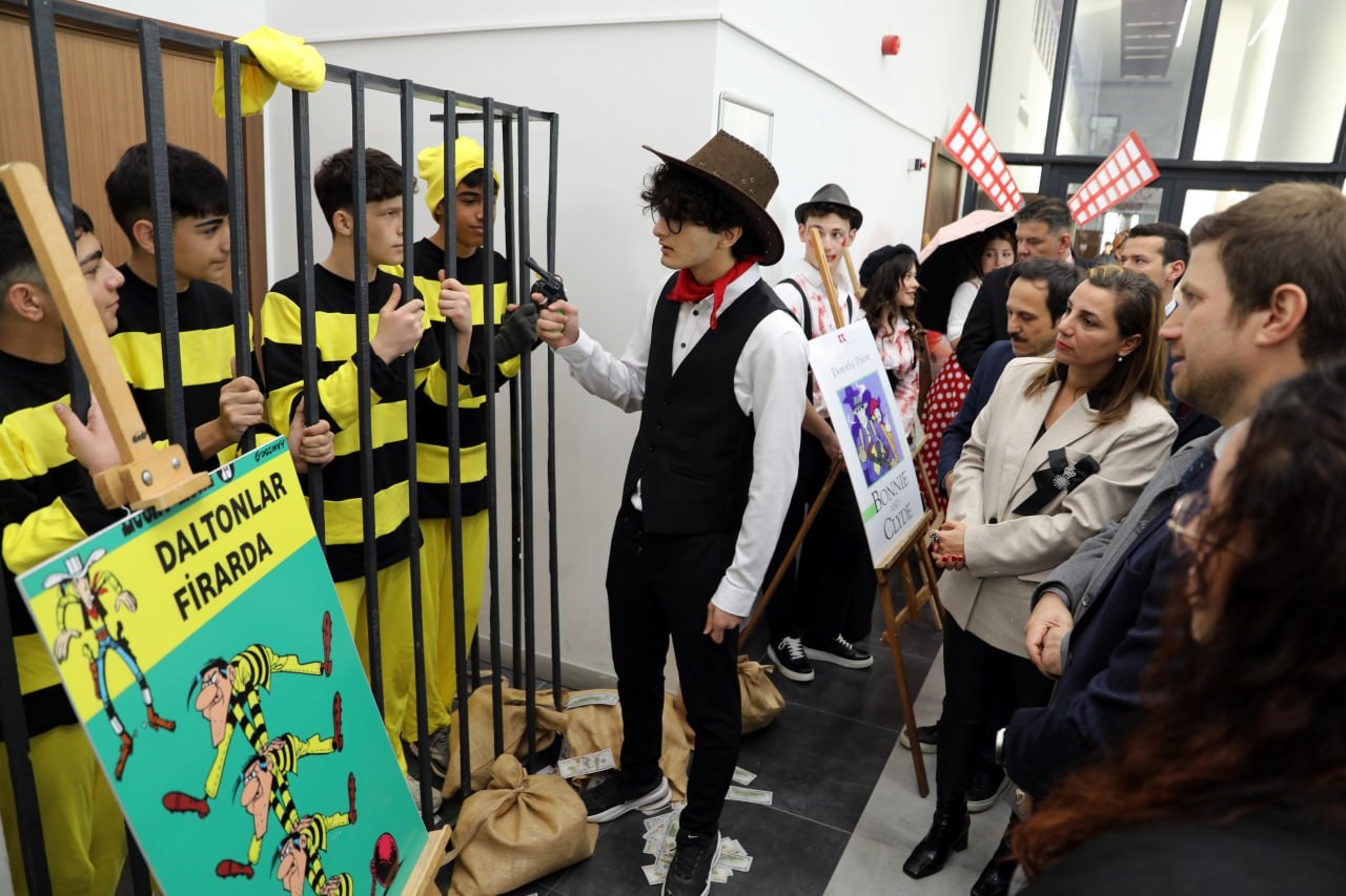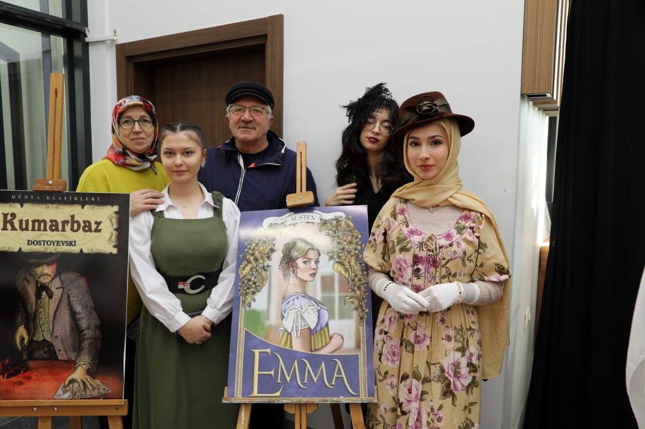 Program, öğrencilerin hazırladığı mini tiyatro gösterisiyle başladı; ardından roman karakterlerinin yer aldığı stantlar gezildi.