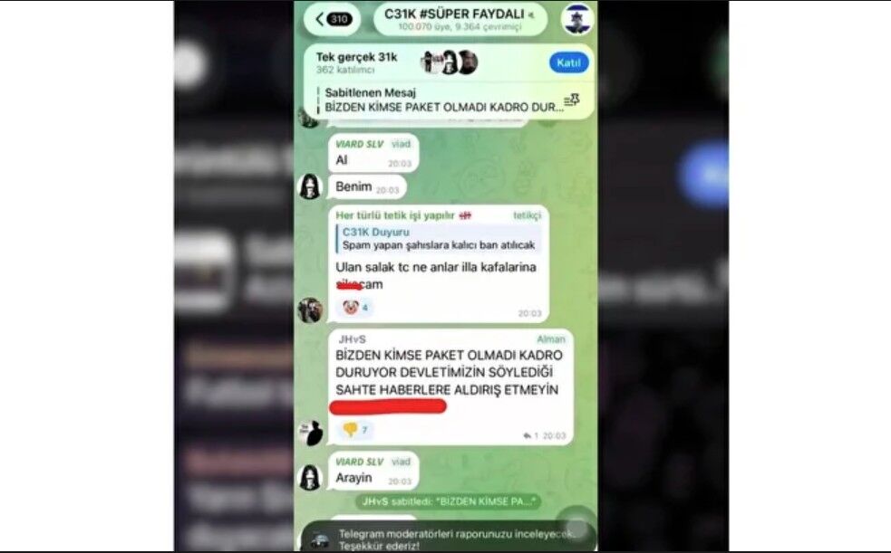 Toplumsal huzuru dinamitlemeyi amaçlayan bu organize kötülük ağına karşı güvenlik güçleri harekete geçti. Yürütülen kapsamlı ve çok yönlü soruşturmalar neticesinde, provokasyon ve terör yuvası haline gelen C31K grubu ve bağlantılı platformlar hızla erişime kapatıldı.