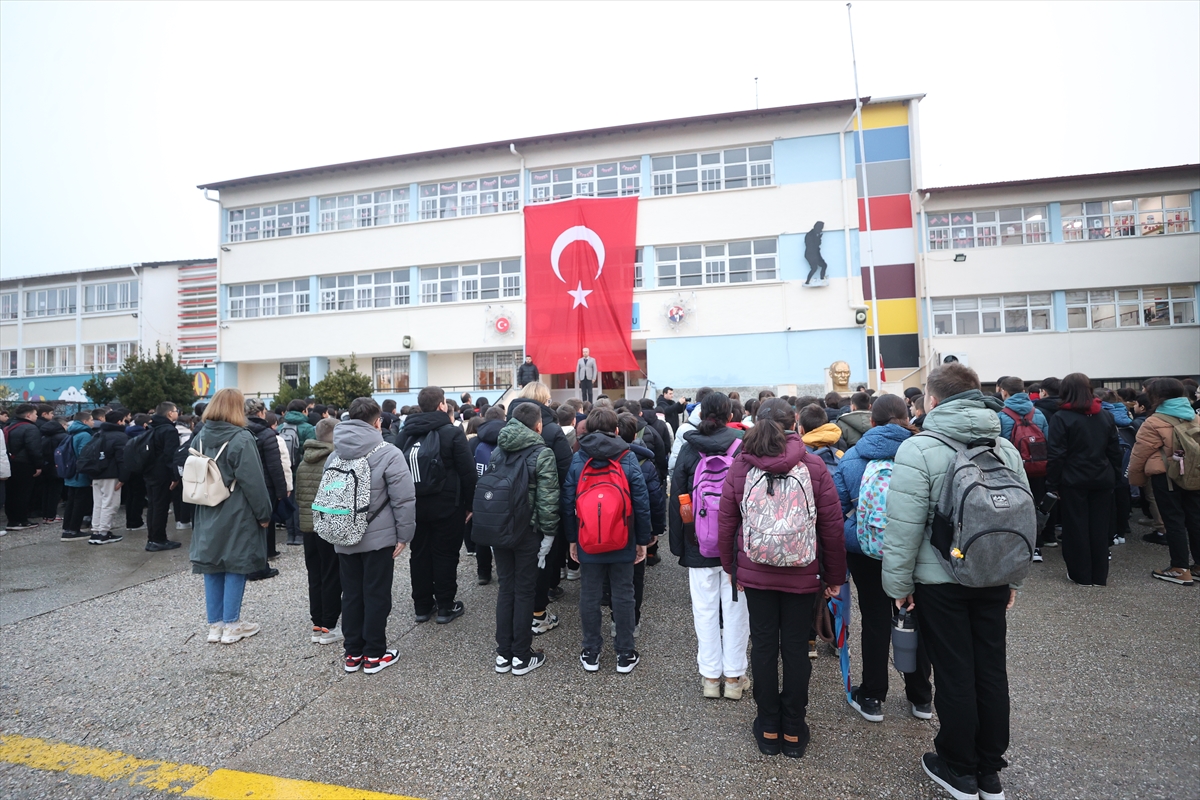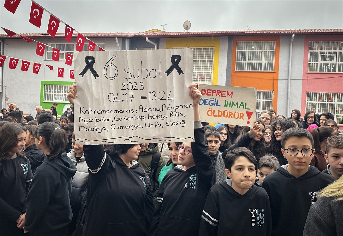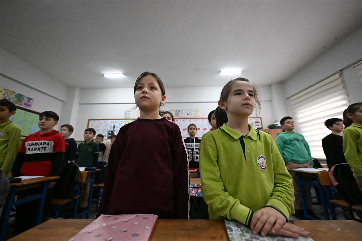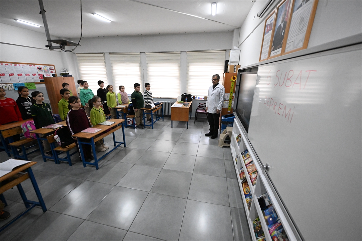 Kahramanmaraş merkezli 6 Şubat depremlerinin 3. yılı dolayısıyla okullarda ilk derse başlamadan önce bir dakikalık saygı duruşunda bulunuldu.
