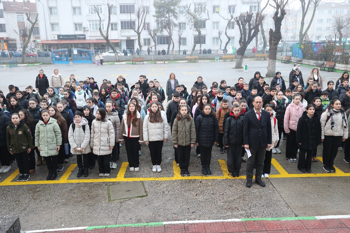 Tekirdağ’da da Süleymanpaşa İlkokulu öğrencileri saygı duruşunda bulundu.