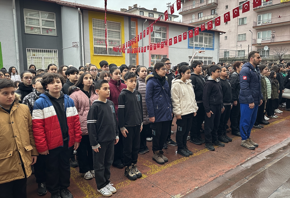 Ankara'nın Mamak ilçesindeki Şehitlik Ortaokulu öğrencileri saygı duruşunda bulundu.