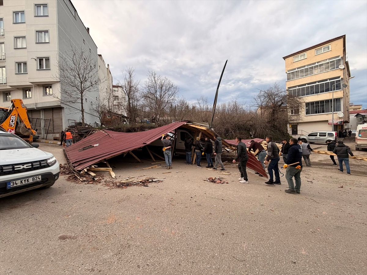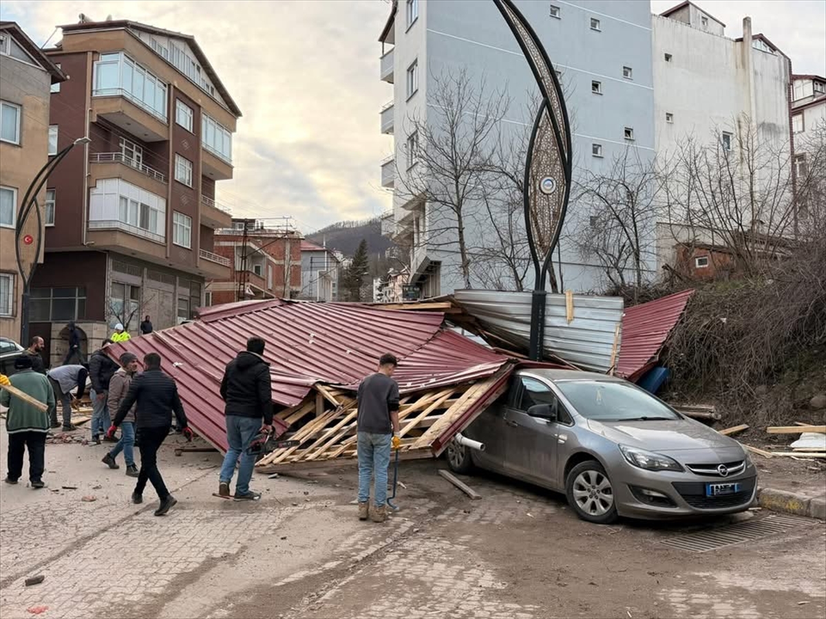 Gölköy ilçesindeki Merkez ve Sarıca mahallelerinde bazı evlerin uçan çatıları park halindeki araçlara zarar verdi.