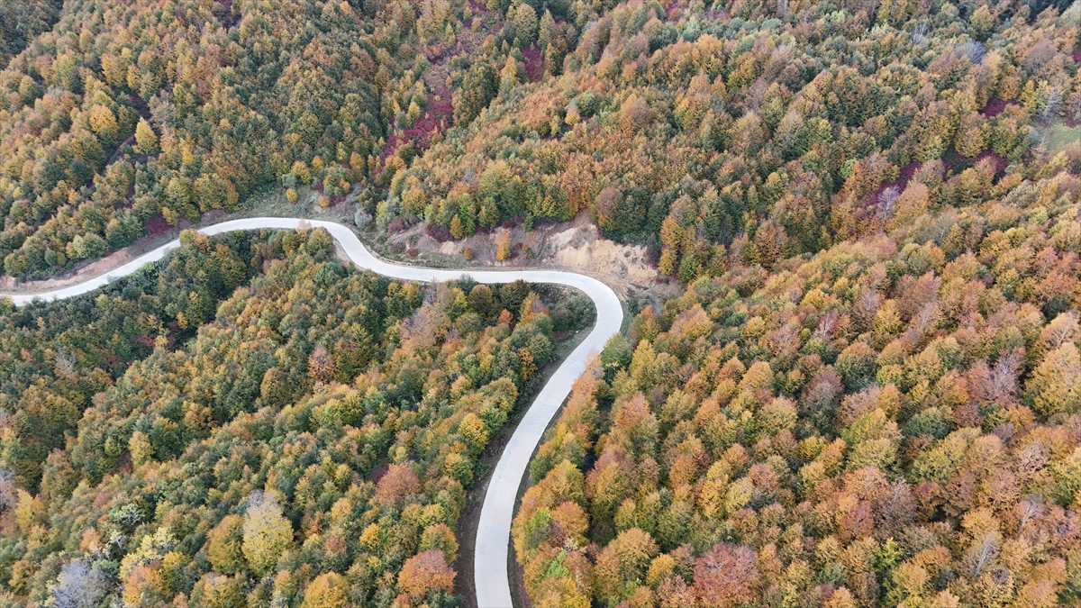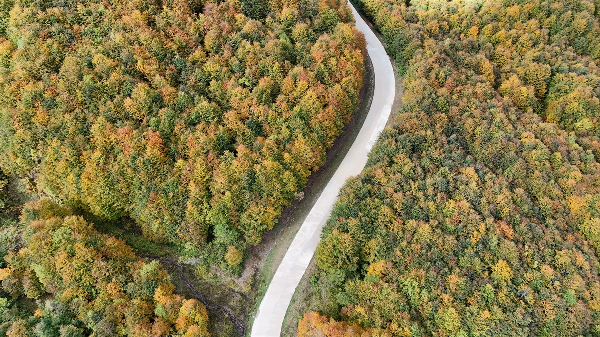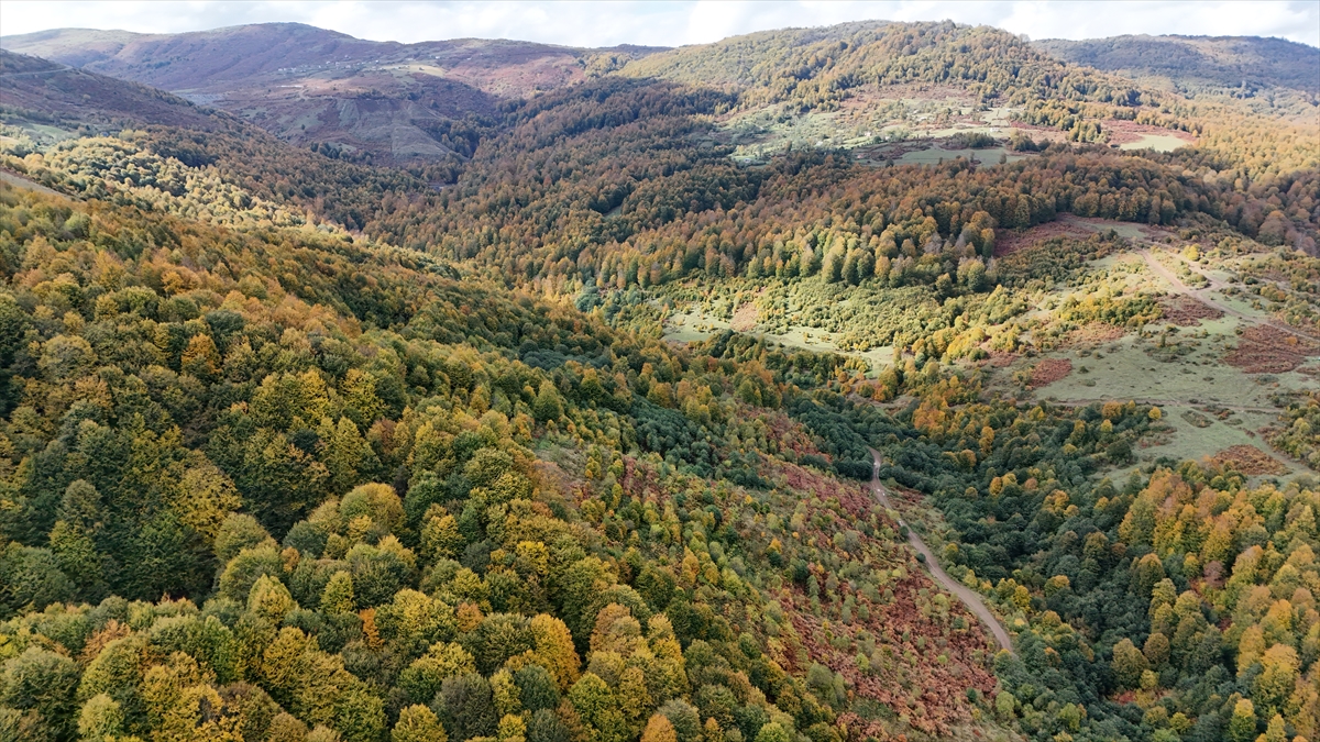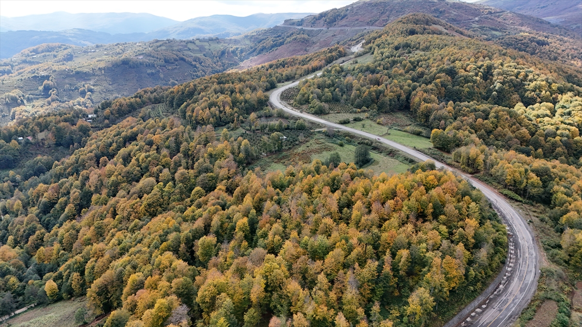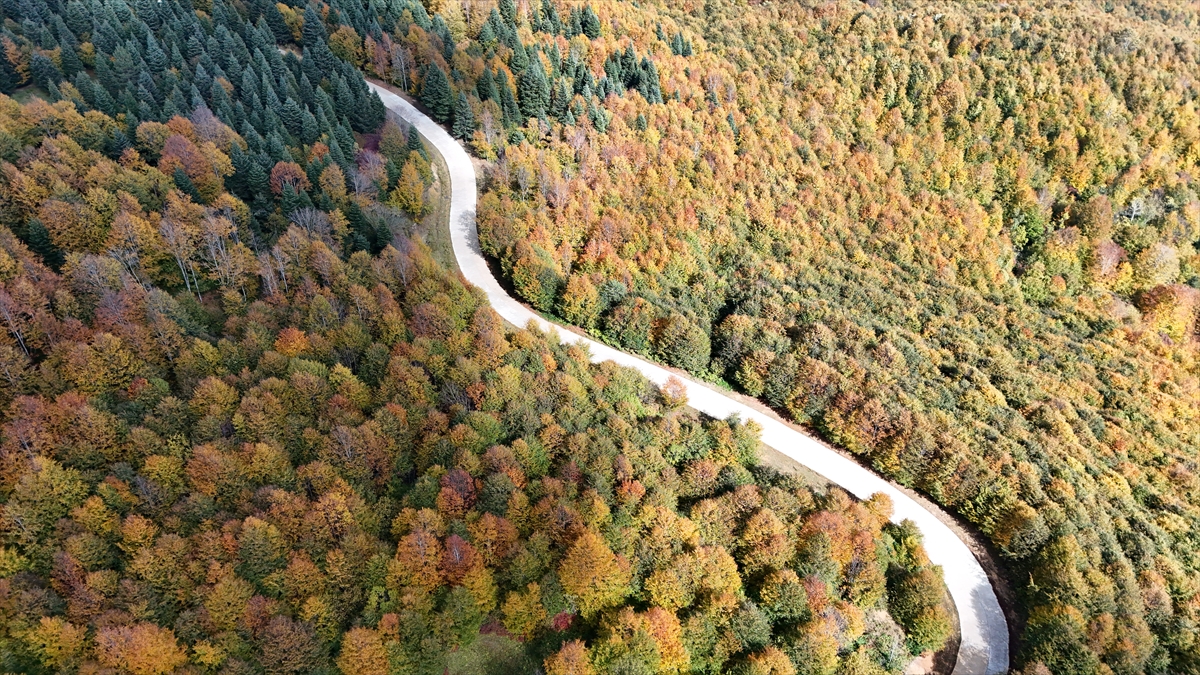 Sarı, kırmızı, kahverengi ve yeşilin tonlarına bürünen manzara havadan görüntülendi.