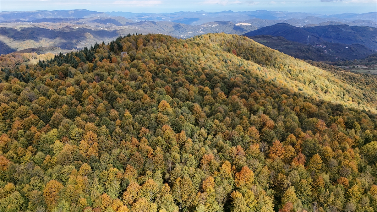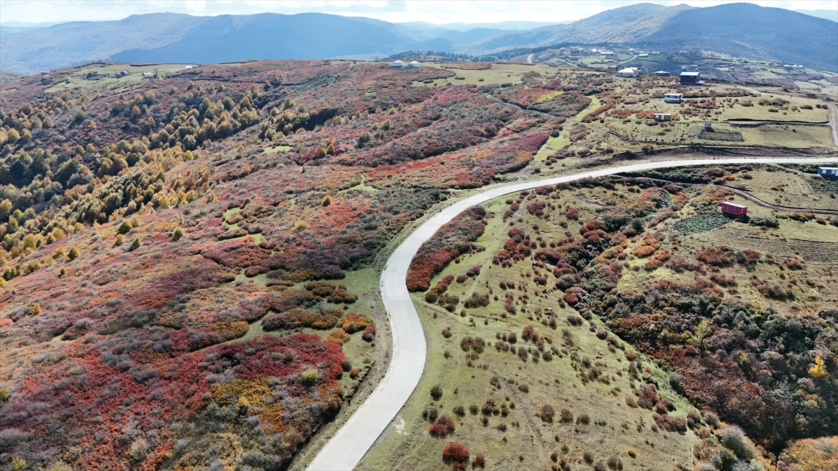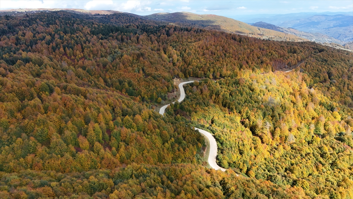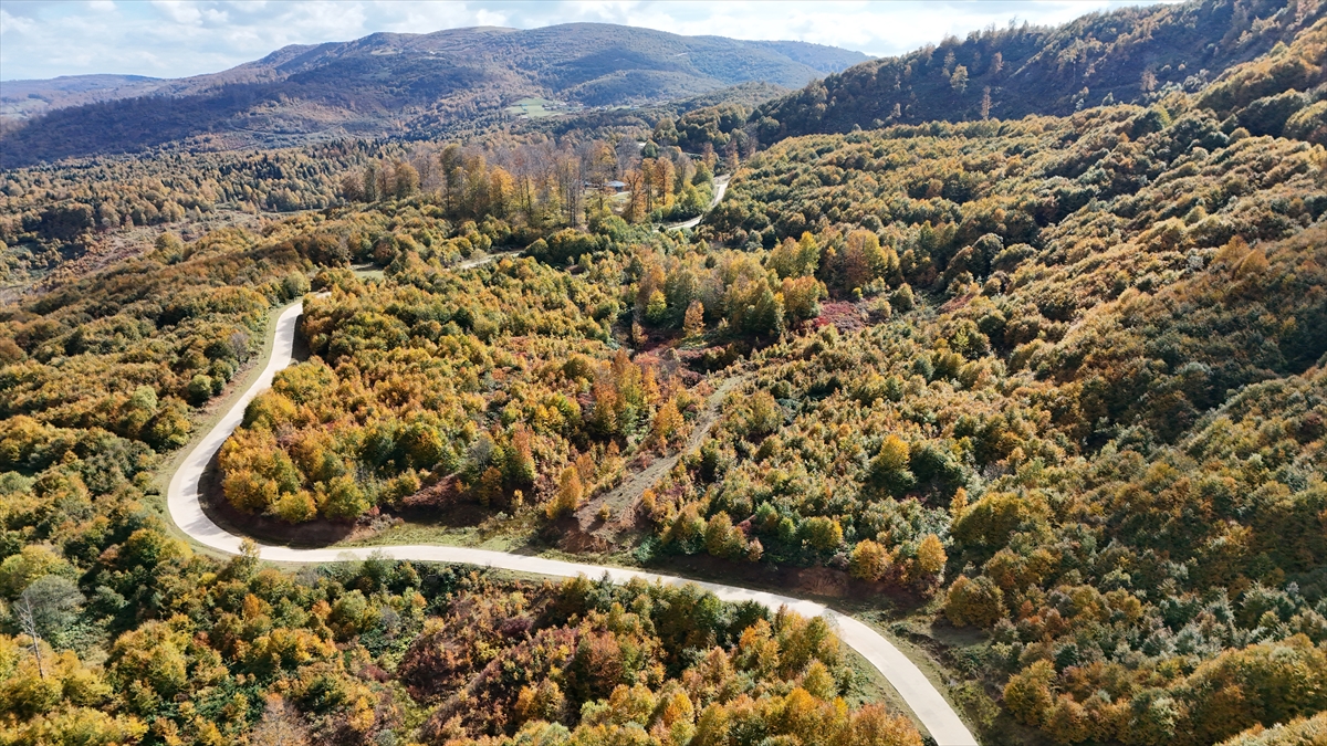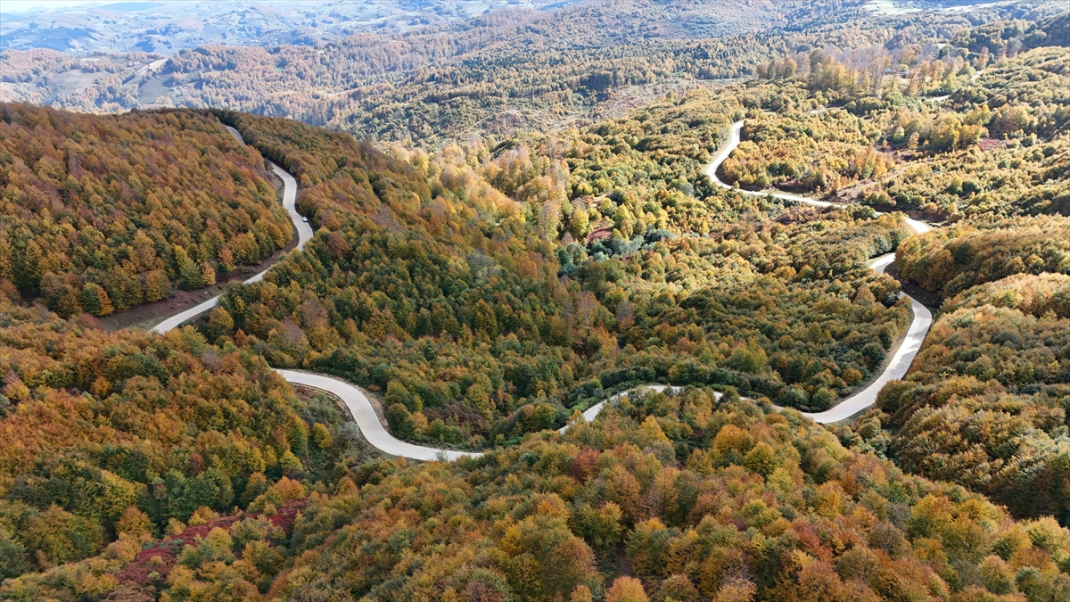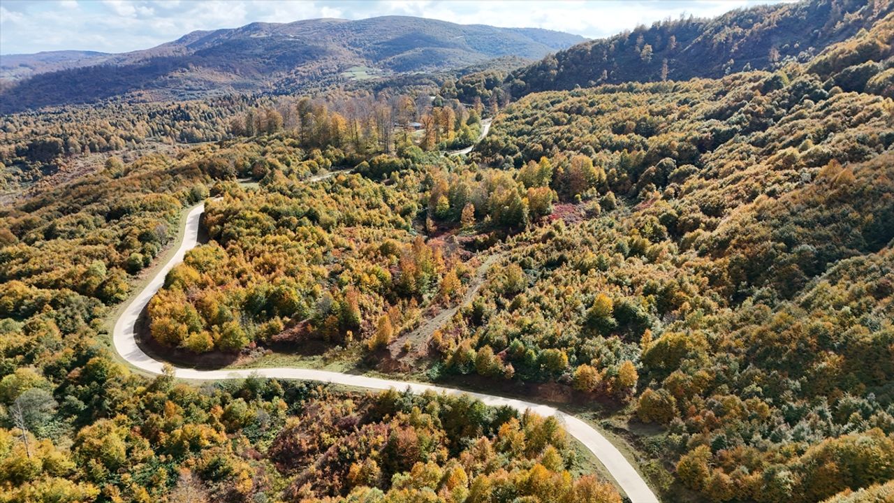 Sarı, kırmızı, kahverengi ve yeşilin tonlarına bürünen manzara havadan görüntülendi.