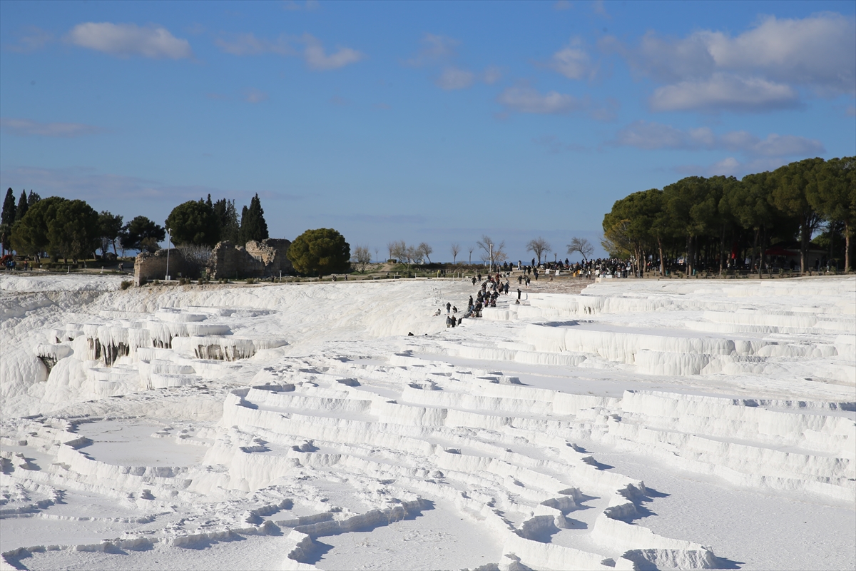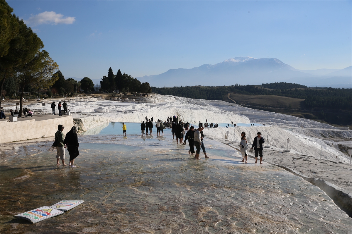 Dünyanın dört bir tarafından bölgeye gelen yerli ve yabancı turistler, travertenleri ve çevredeki antik kentleri gezme fırsatı buluyor.