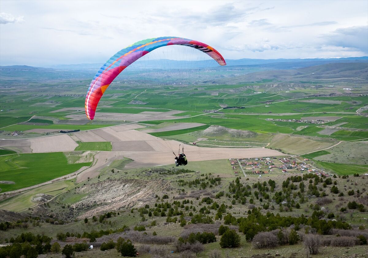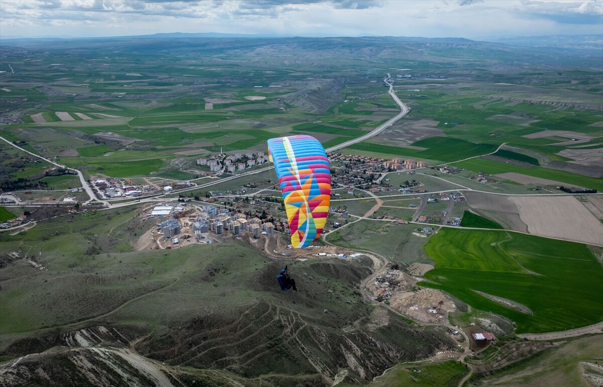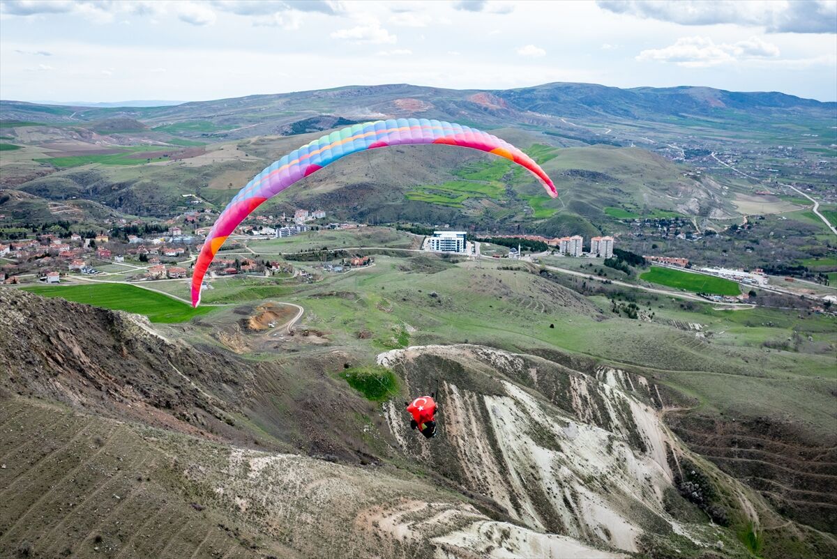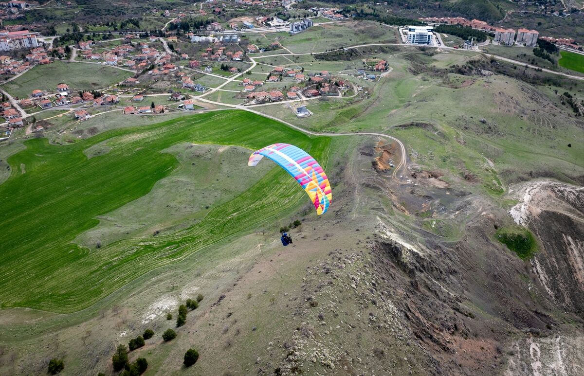 Ankara Emniyet Müdürlüğünde görevli komiser Oğuz Er, Ayaş'ta bulunan yamaç paraşütü pistinde Türk Polis Teşkilatının 181. yıl dönümü sebebiyle uçuş yaptı.