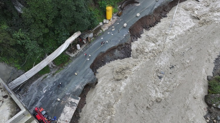 Toprak kayması sebebiyle Çamlıhemşin ilçesindeki Ayder Yaylası yolunda ulaşım sağlanamıyor.