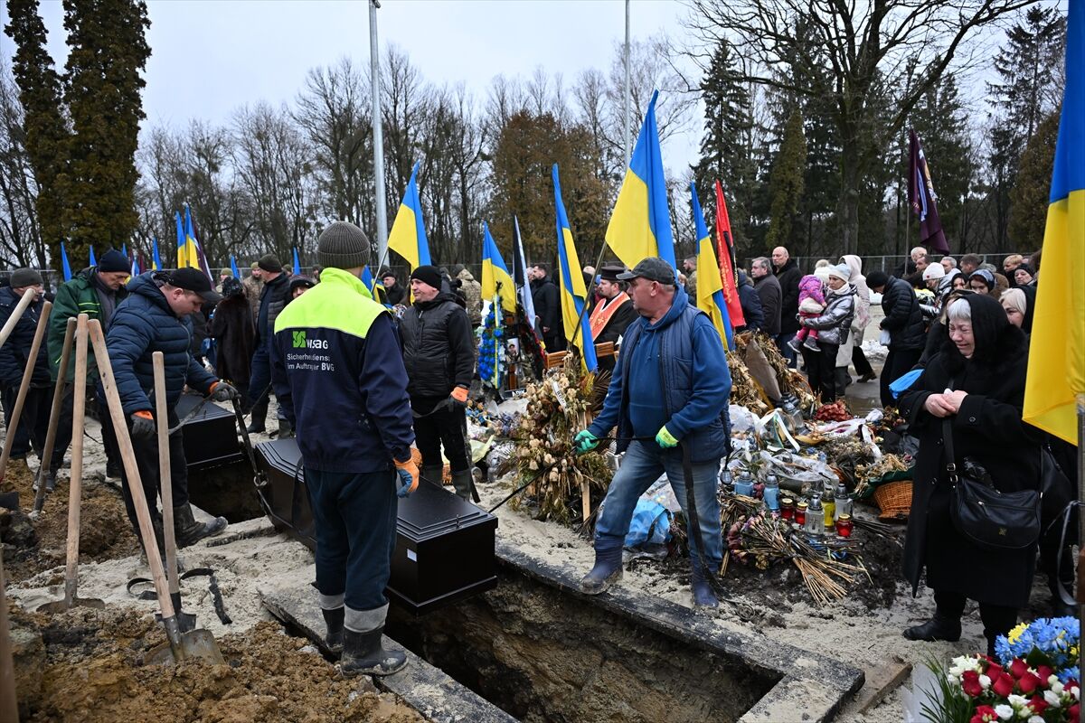 Rusya-Ukrayna Savaşı’nın dördüncü yıl dönümünde Ukrayna, kayıplarının yasını tutmaya devam ederken; Lviv kentindeki tarihi Lychakiv Mezarlığı, cephede hayatını kaybeden üç askerin hüzünlü cenaze törenine ev sahipliği yaptı.