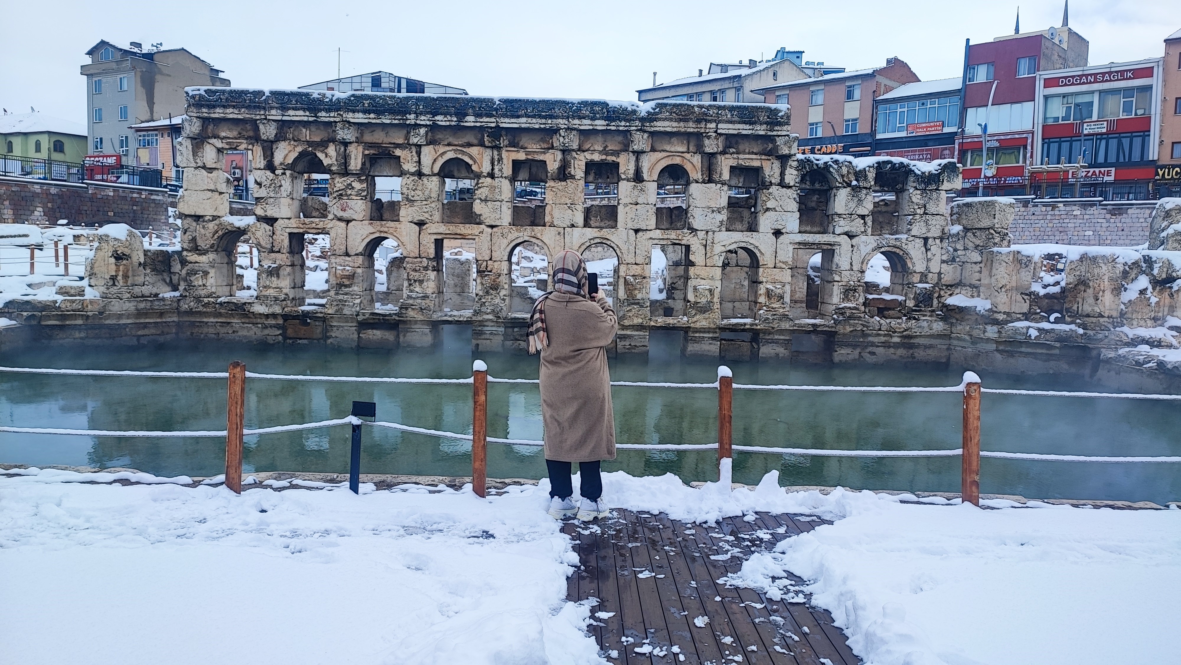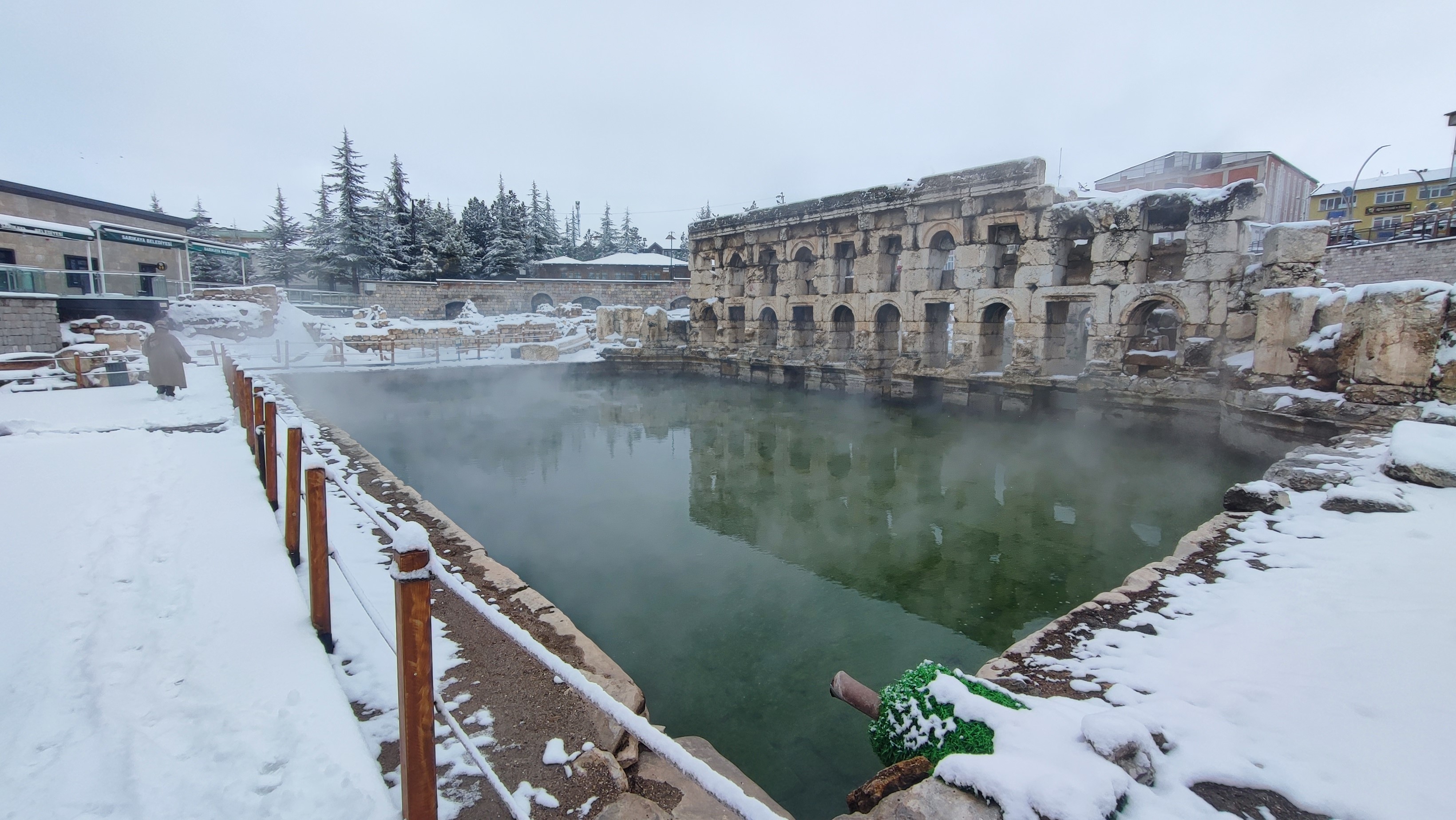 UNESCO Dünya Mirası Geçici Listesi'nde yer alan tarihi yapı, kış mevsiminde de ziyaretçilerin ilgisini çekiyor. Kar altında sıcak sudan yükselen buharla masalsı görüntüler özellikle fotoğraf tutkunlarının ilgisini çekiyor.