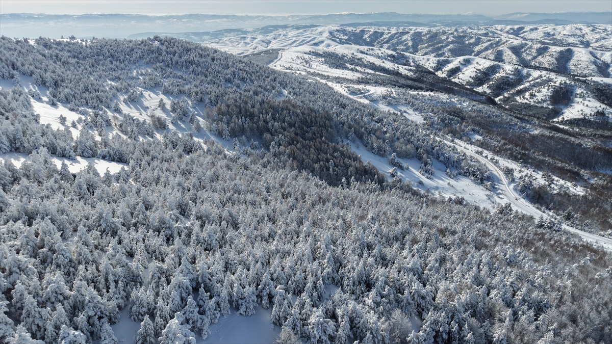 Yüksek kesimlerde etkisini artıran kar yağışıyla ormanlar beyaza büründü.