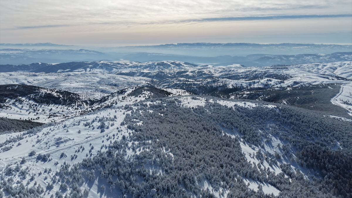 İlçe merkezine yaklaşık 33 kilometre uzaklıkta bulunan Dürtmen Dağı'nda kar yağışı sonrası oluşan beyaz örtü, doğayla bütünleşen görsel şölen oluşturdu.