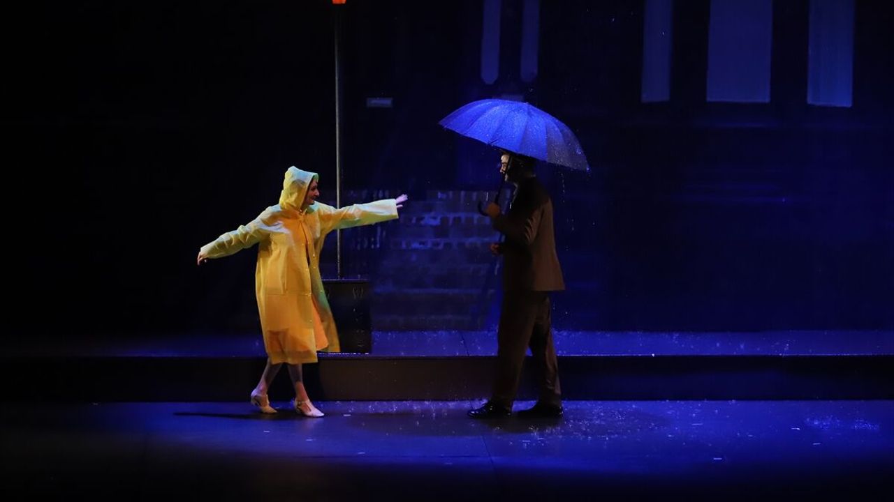Teknik ekibin kurdukları sistemle sahnede yağmur yağdırma görüntüsü oluşturduğu ilgi çekici eserde, orkestra, sahne üstündeki sanatçılar ve teknik personel dahil 160 kişi görev alıyor.