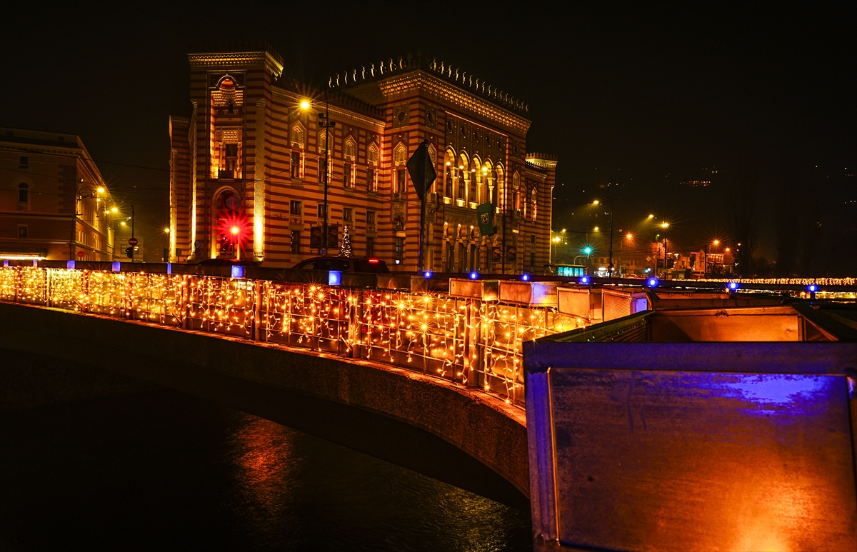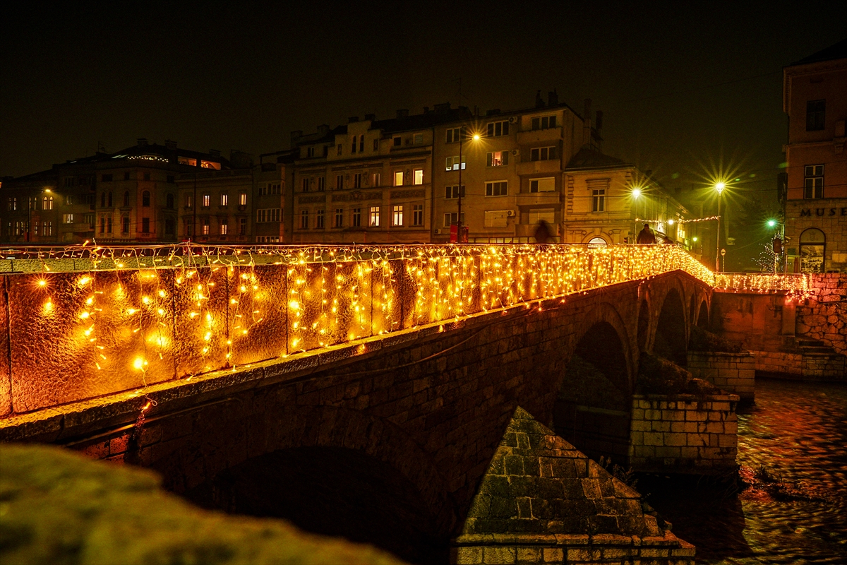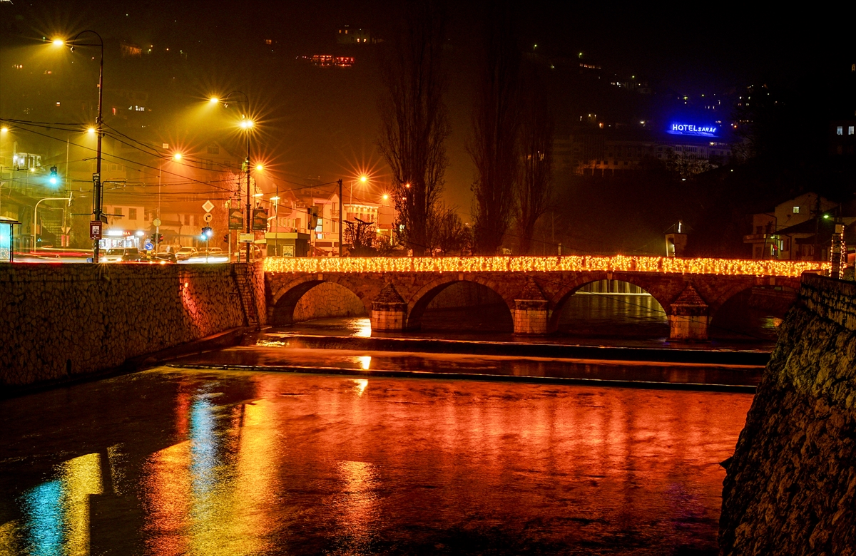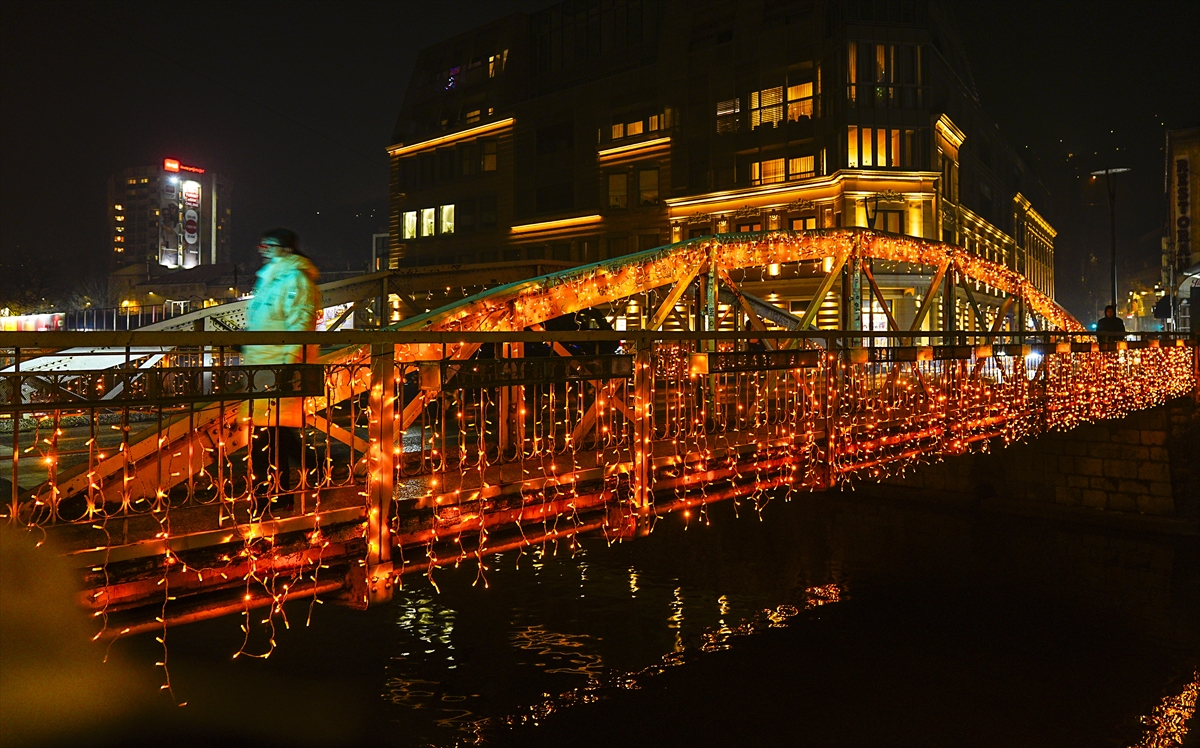 Bosna Hersek'in tarih ve kültür kokan başkenti Saraybosna, 2026'ya girmeye hazırlanırken kentin çehresi de yeni yıl ruhuna büründü. Şehri ikiye bölen ve tarihi dokusuyla bilinen Miljacka Nehri üzerindeki köprüler, gerçekleştirilen özel aydınlatma çalışmalarıyla bambaşka bir görünüme kavuştu. Yeni yıl atmosferi oluşturan ışıklandırma, kent sakinleri ve turistlerden büyük ilgi görüyor.