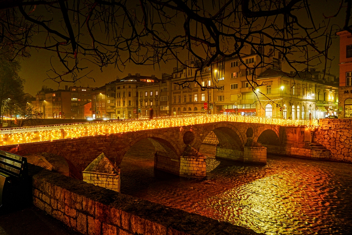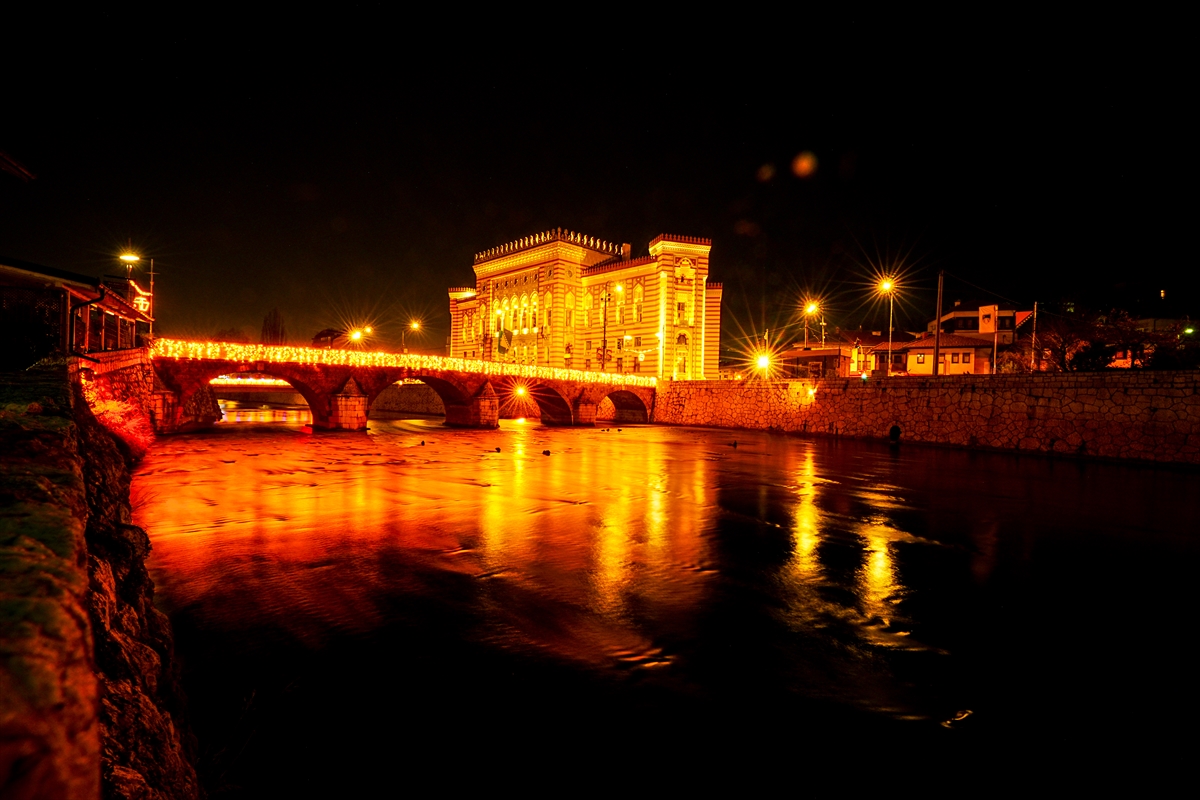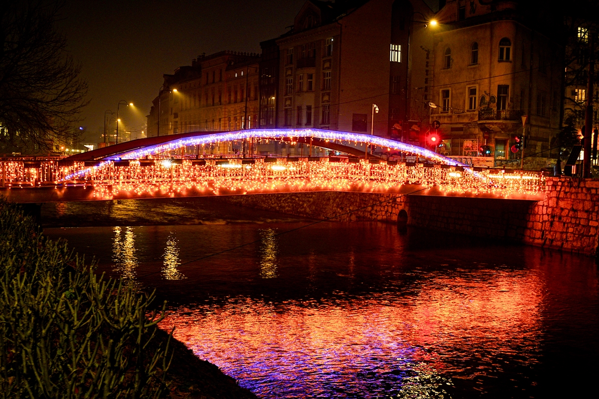 Bosna Hersek'in tarih ve kültür kokan başkenti Saraybosna, 2026'ya girmeye hazırlanırken kentin çehresi de yeni yıl ruhuna büründü. Şehri ikiye bölen ve tarihi dokusuyla bilinen Miljacka Nehri üzerindeki köprüler, gerçekleştirilen özel aydınlatma çalışmalarıyla bambaşka bir görünüme kavuştu. Yeni yıl atmosferi oluşturan ışıklandırma, kent sakinleri ve turistlerden büyük ilgi görüyor.